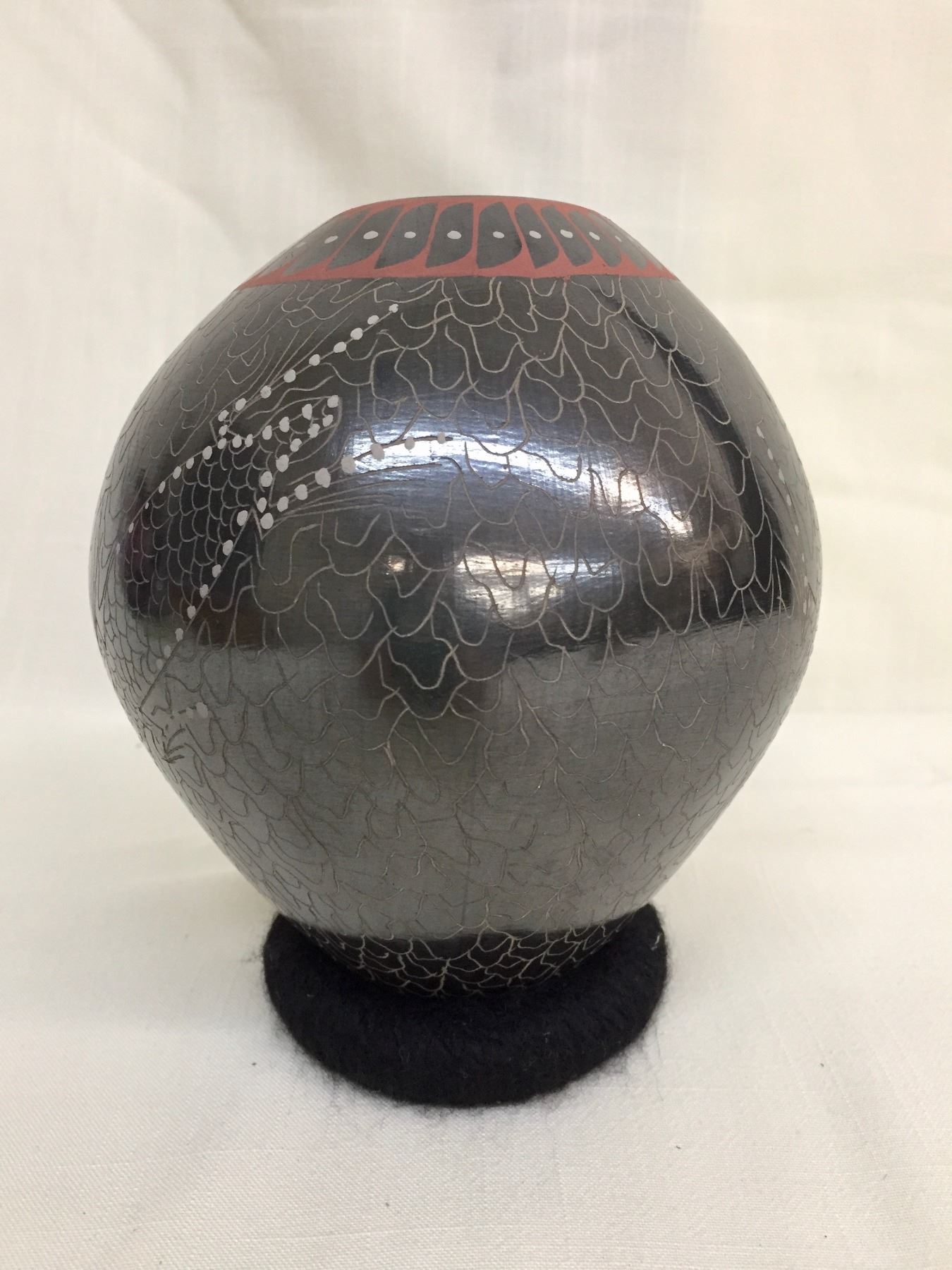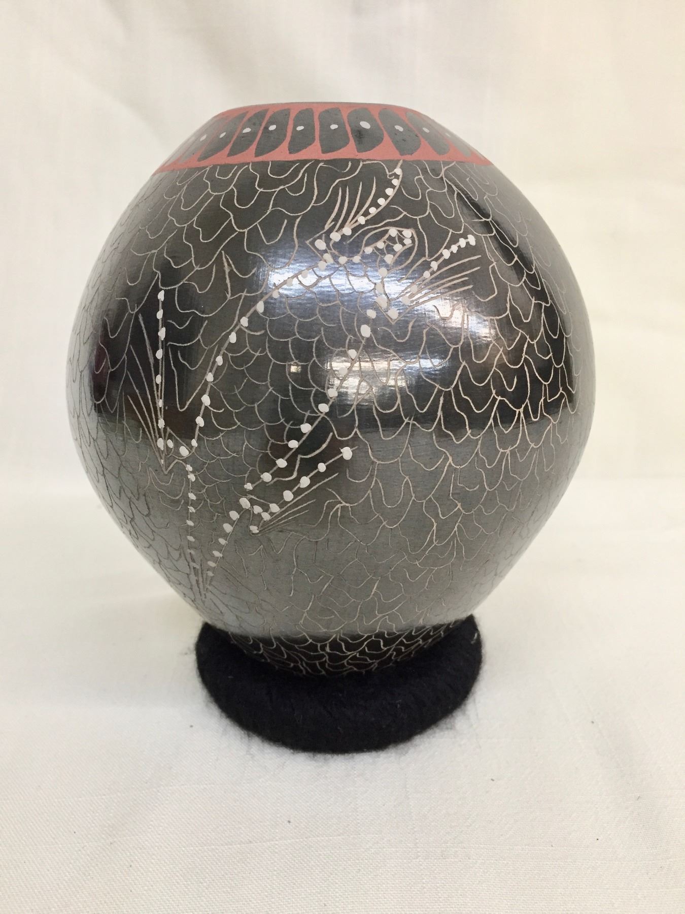 Description: For your bidding pleasure, we offer this gorgeous Polychrome (multi-colored) Mata Ortiz Pot created by the master potter, Efrain Lucero. Maker: Efrain Lucero. Approx. Age: Modern. Size: 5”w x 6” tall. Condition: Good for its age, normal wear expected. Please look closely at the pictures - they are an important part of our description. Shipping: There will be a $10 handling / packaging fee for shipping this lot. The actual cost of postage will be added on top of that.