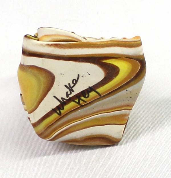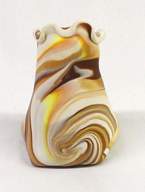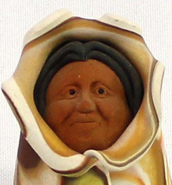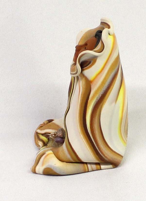 Polymer Clay Silent Wisdom Native American Figurine by Whaka Hey, measures 3'' x 2'' x 2'', embellished with small polished stones, signed on the bottom