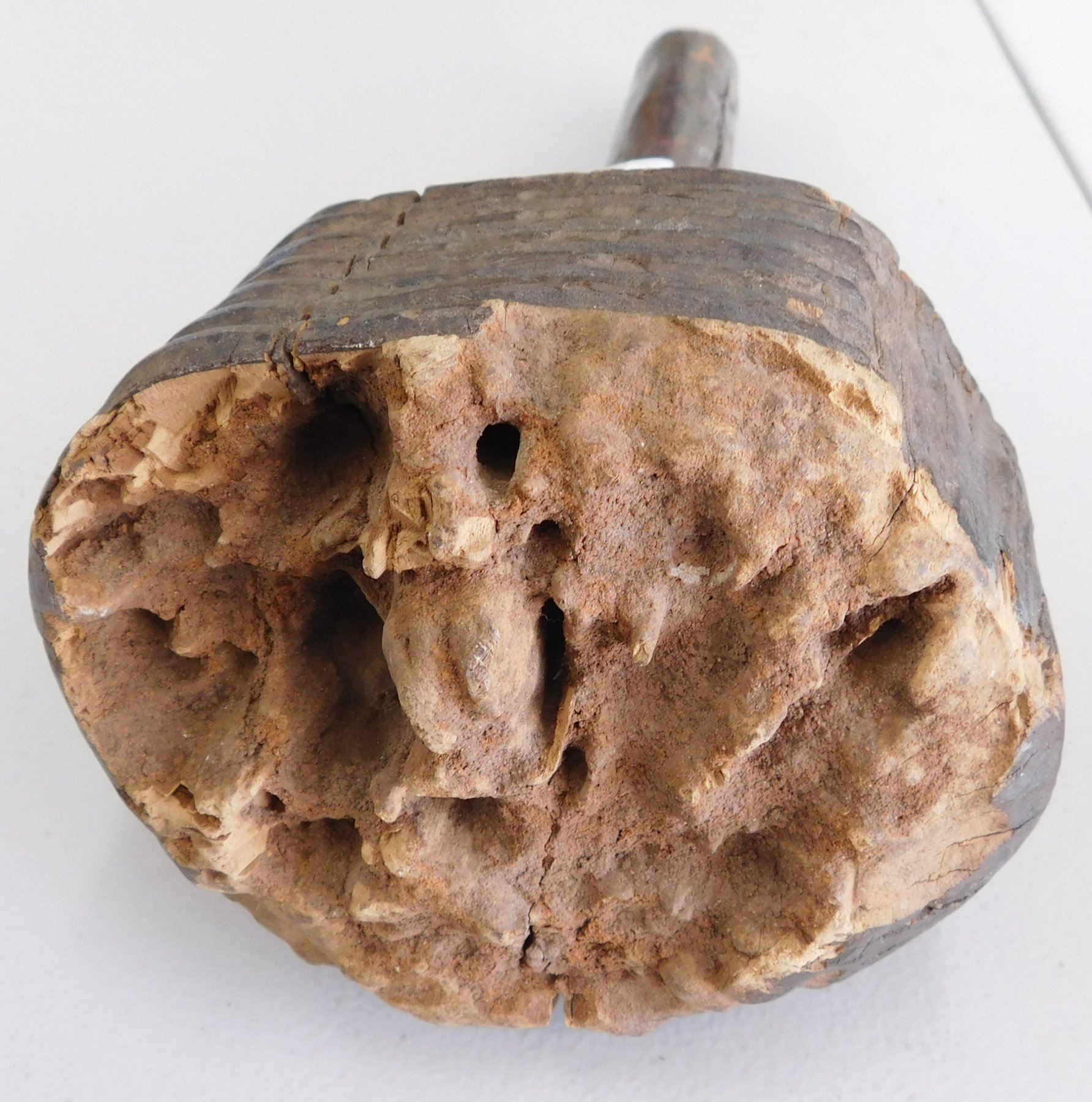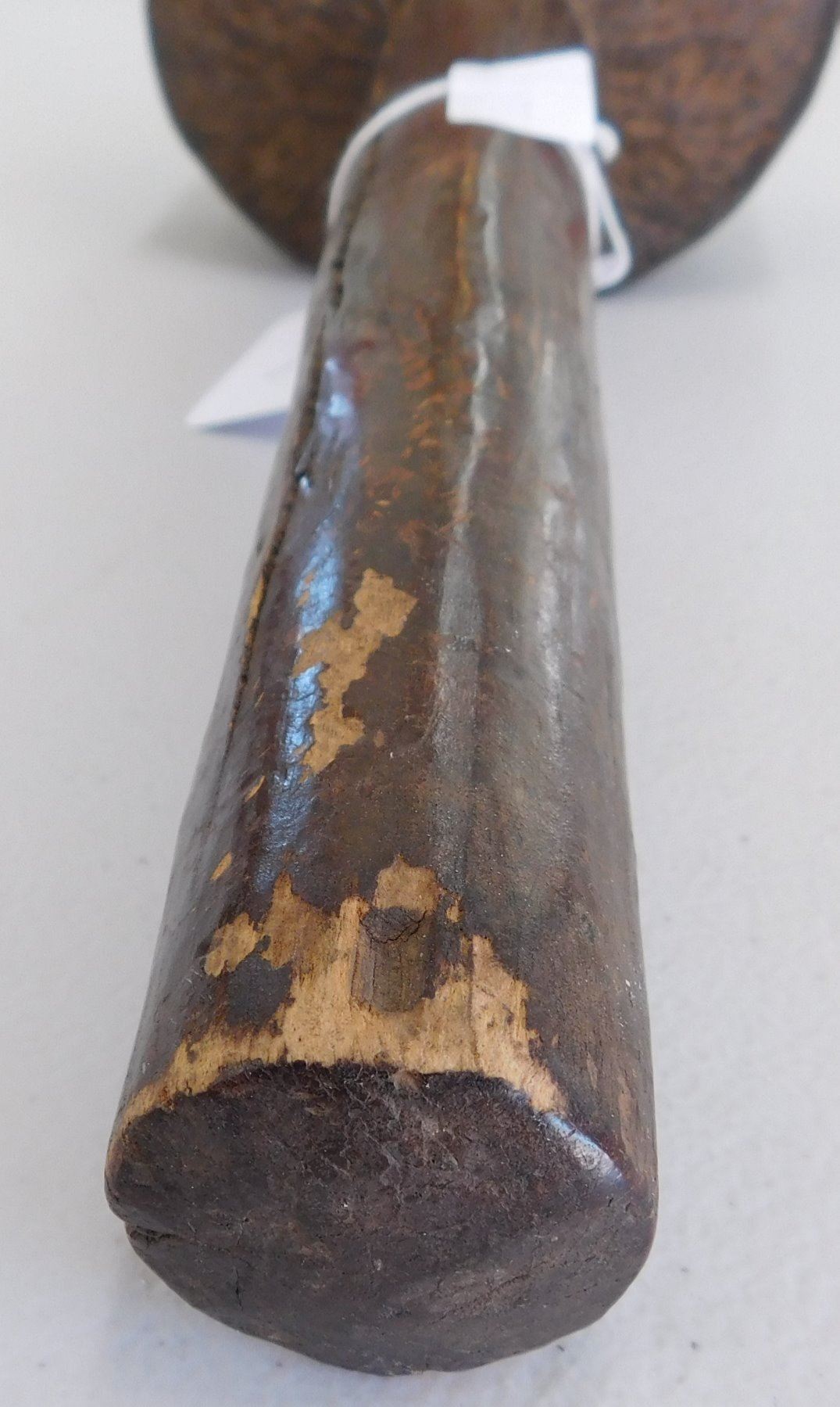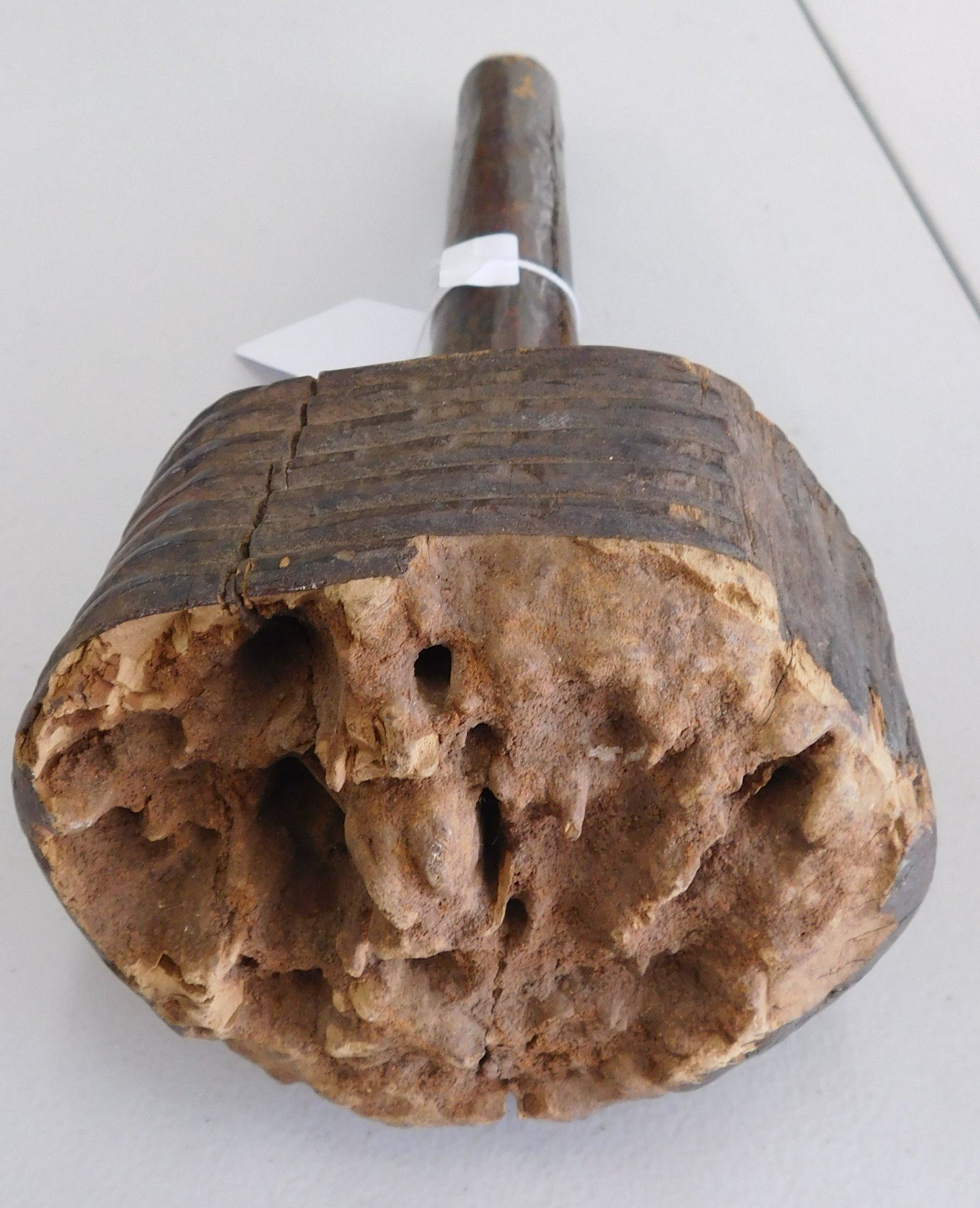 Polynesian Club, circa 1890s. Made of hardwood and measuring 5.5" x 4.5" x 11". Fiji. Condition: Heavy wear from termite damage, see images. Shipping: $34.00 w/insurance and signature, due to size and weight.