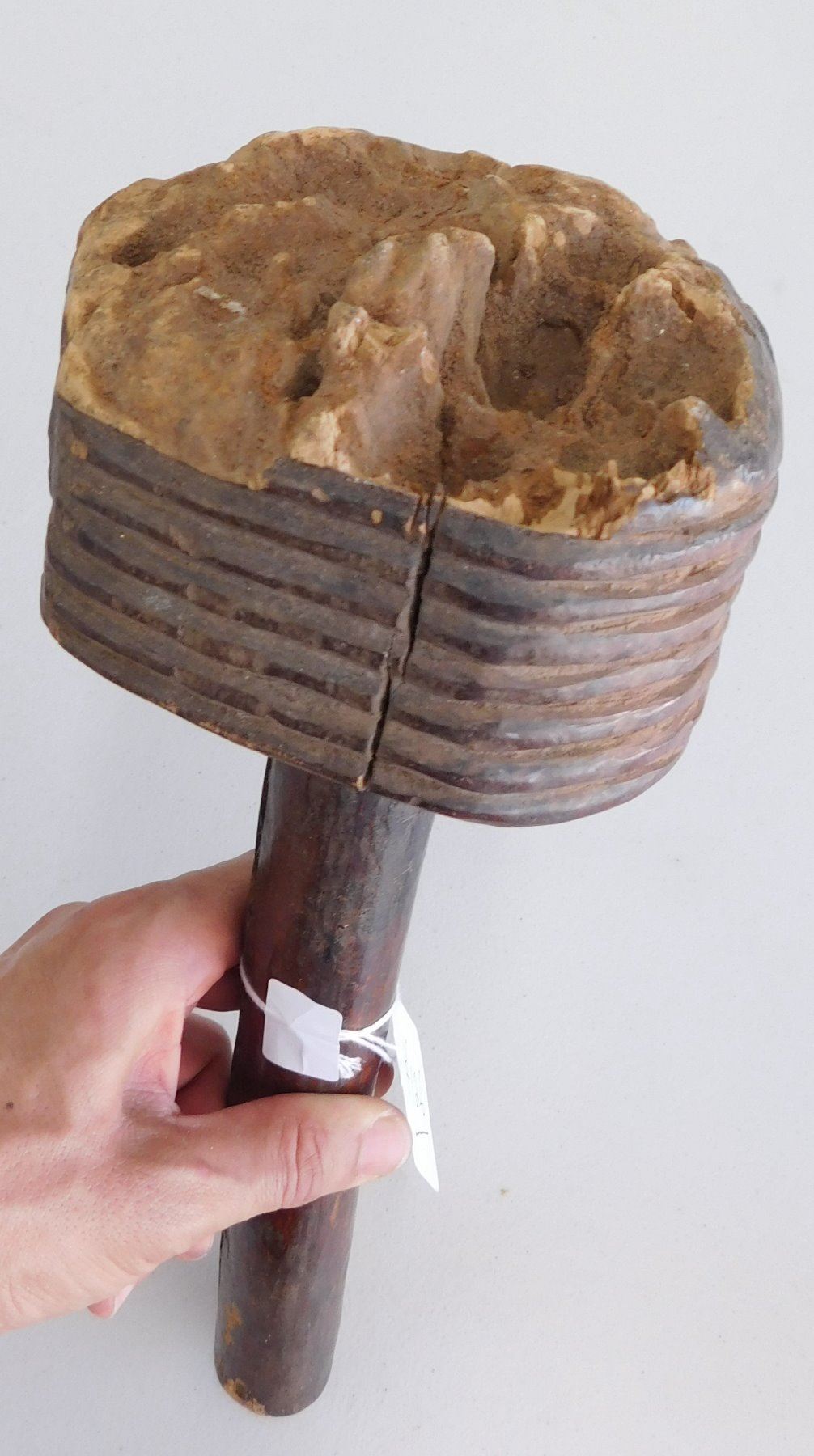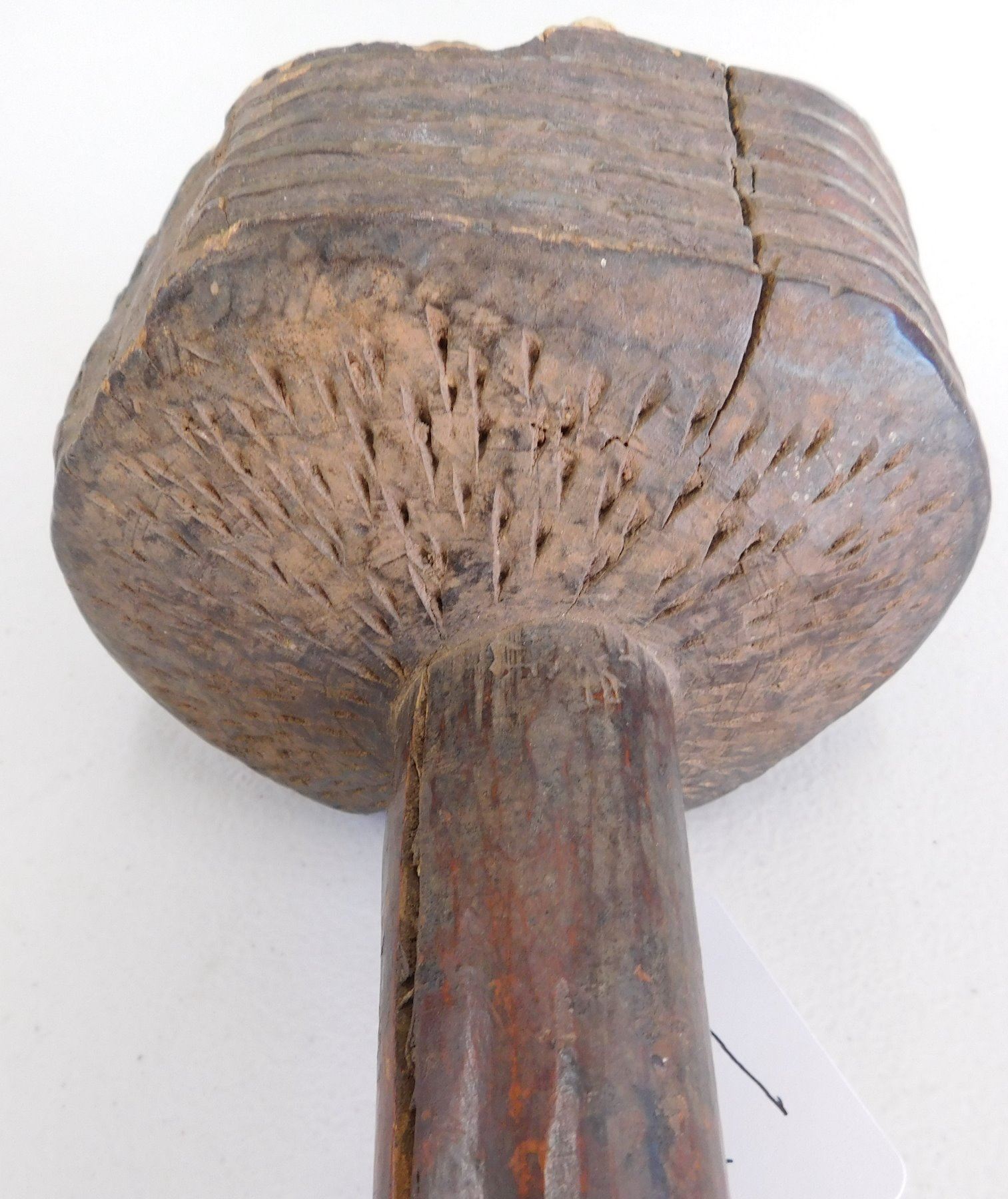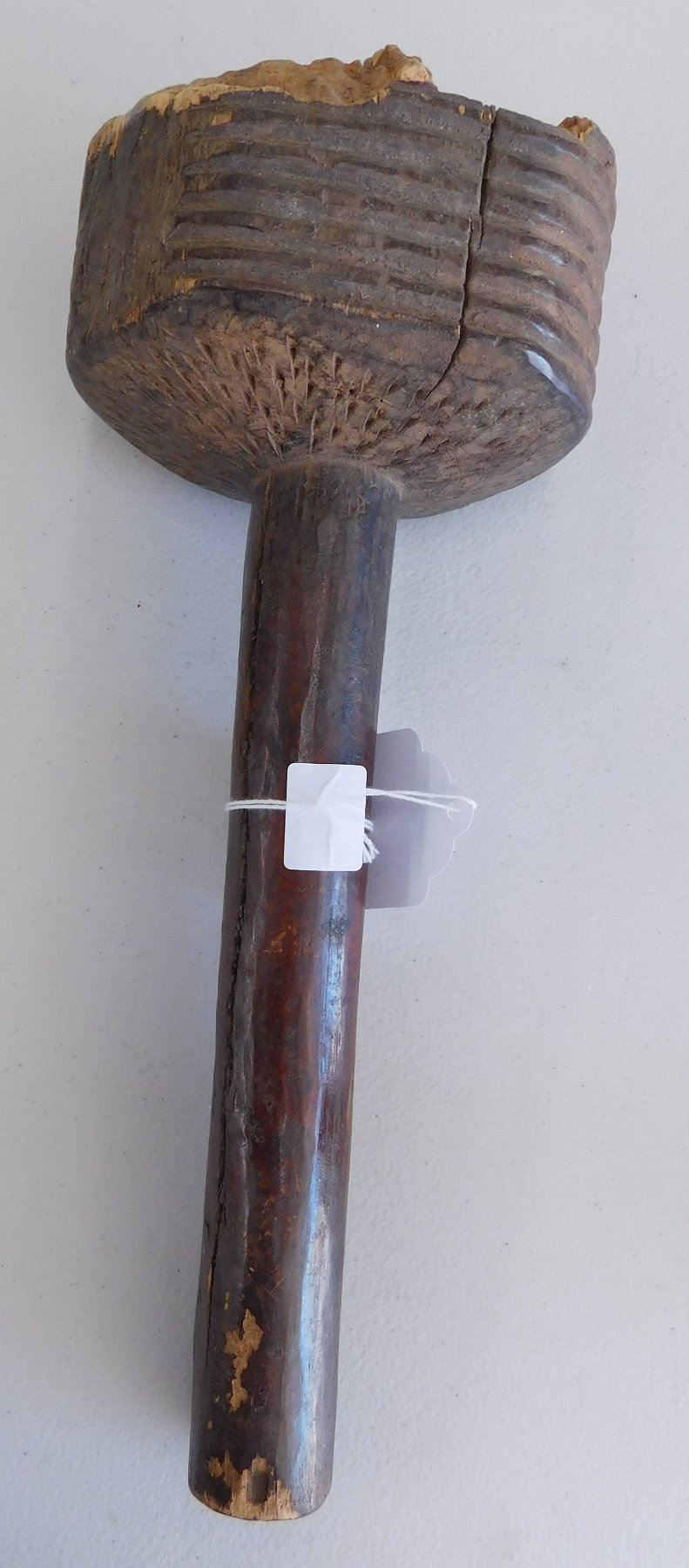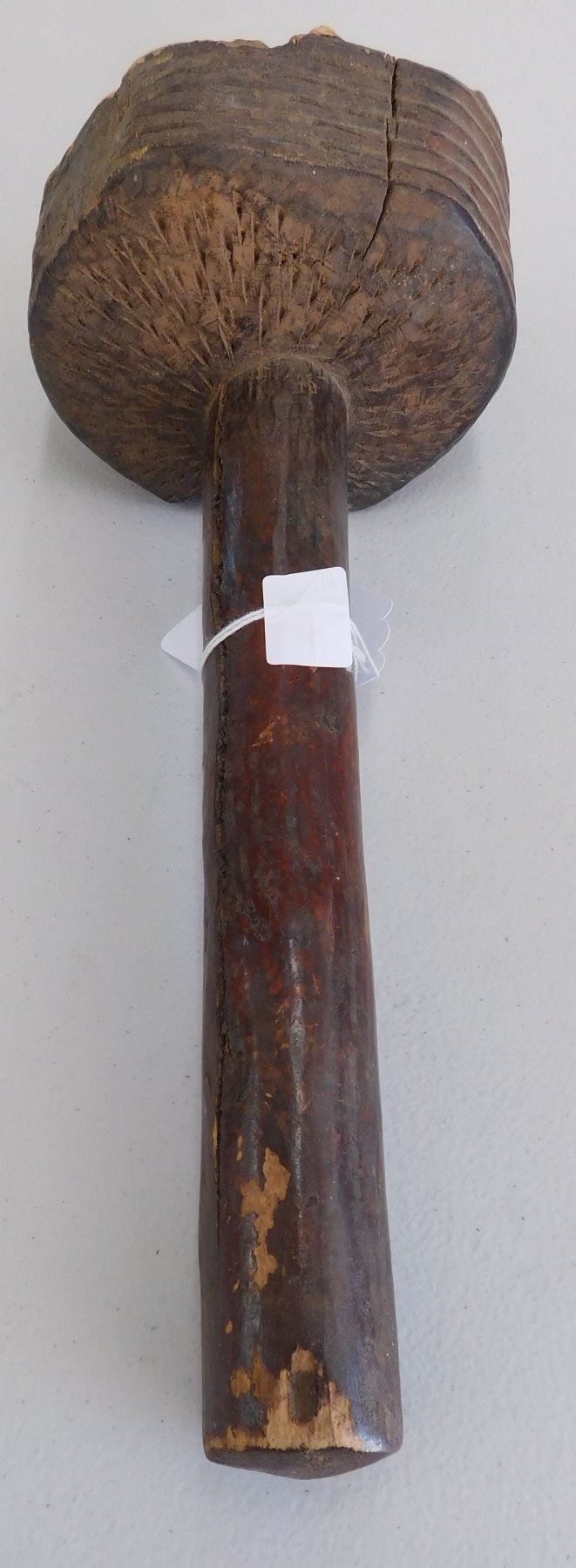 Polynesian Club, circa 1890s. Made of hardwood and measuring 5.5" x 4.5" x 11". Fiji. Condition: Heavy wear from termite damage, see images. Shipping: $34.00 w/insurance and signature, due to size and weight.