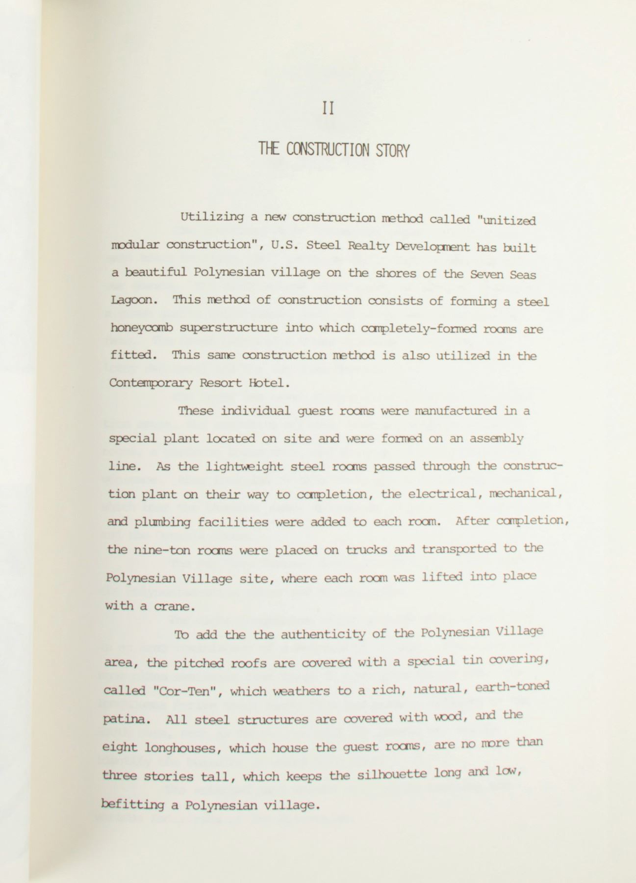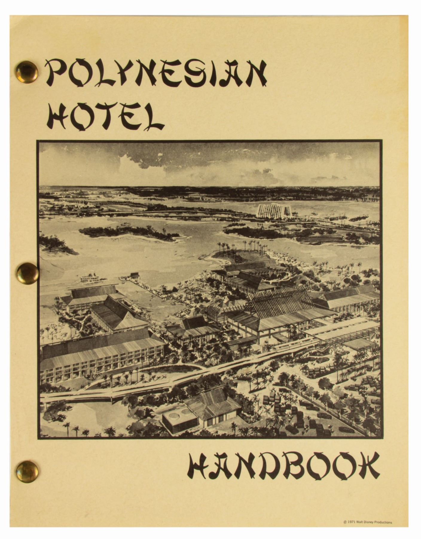 (Polynesian Village, 1971) A handbook from Disney University created for new hires at the Polynesian Hotel at Walt Disney World. This 19-page book comes from the estate of Gary Fravel, who helped create the Disney University training program, and includes great facts, pictures, and diagrams of the hotel. Measuring 11"x8.5", the handbook is in very good condition.