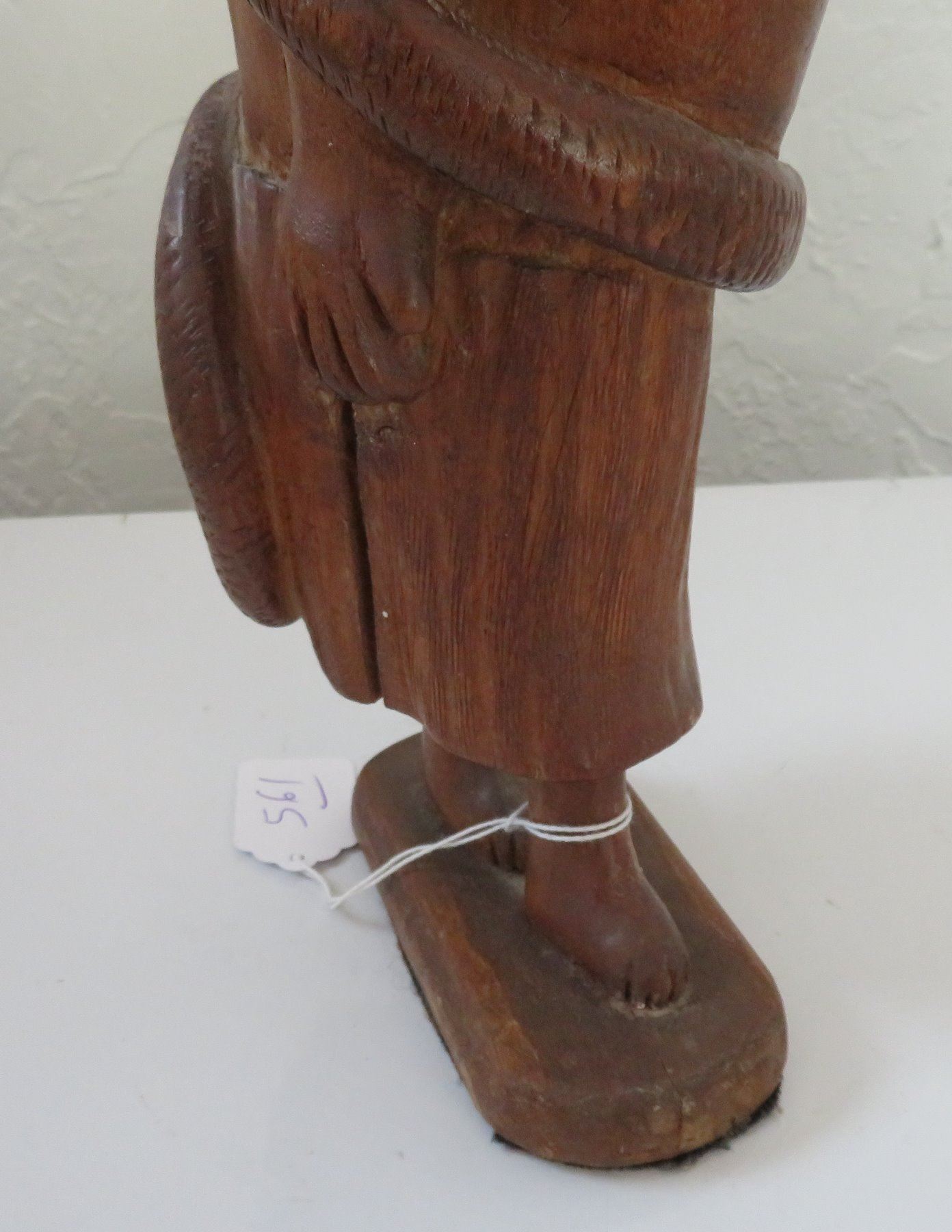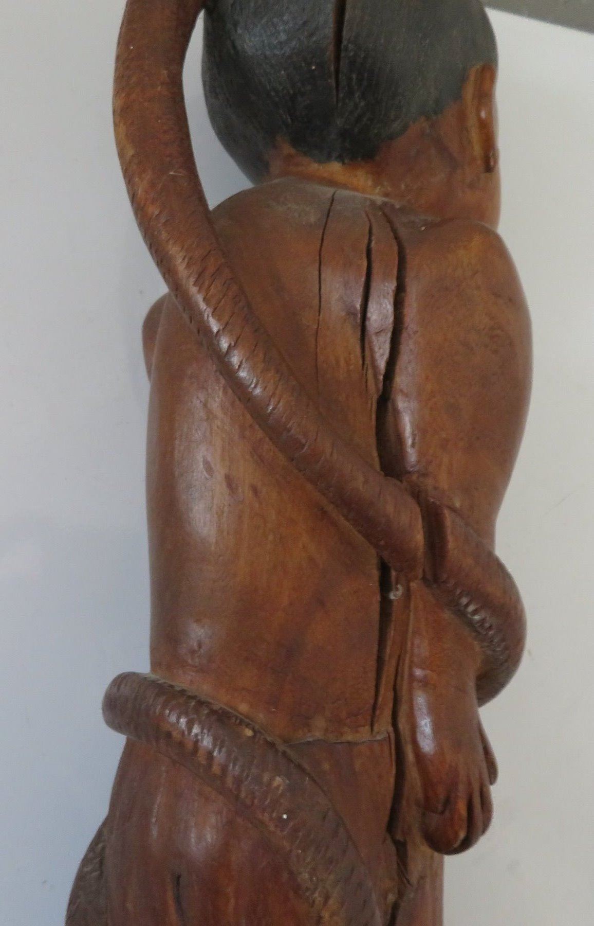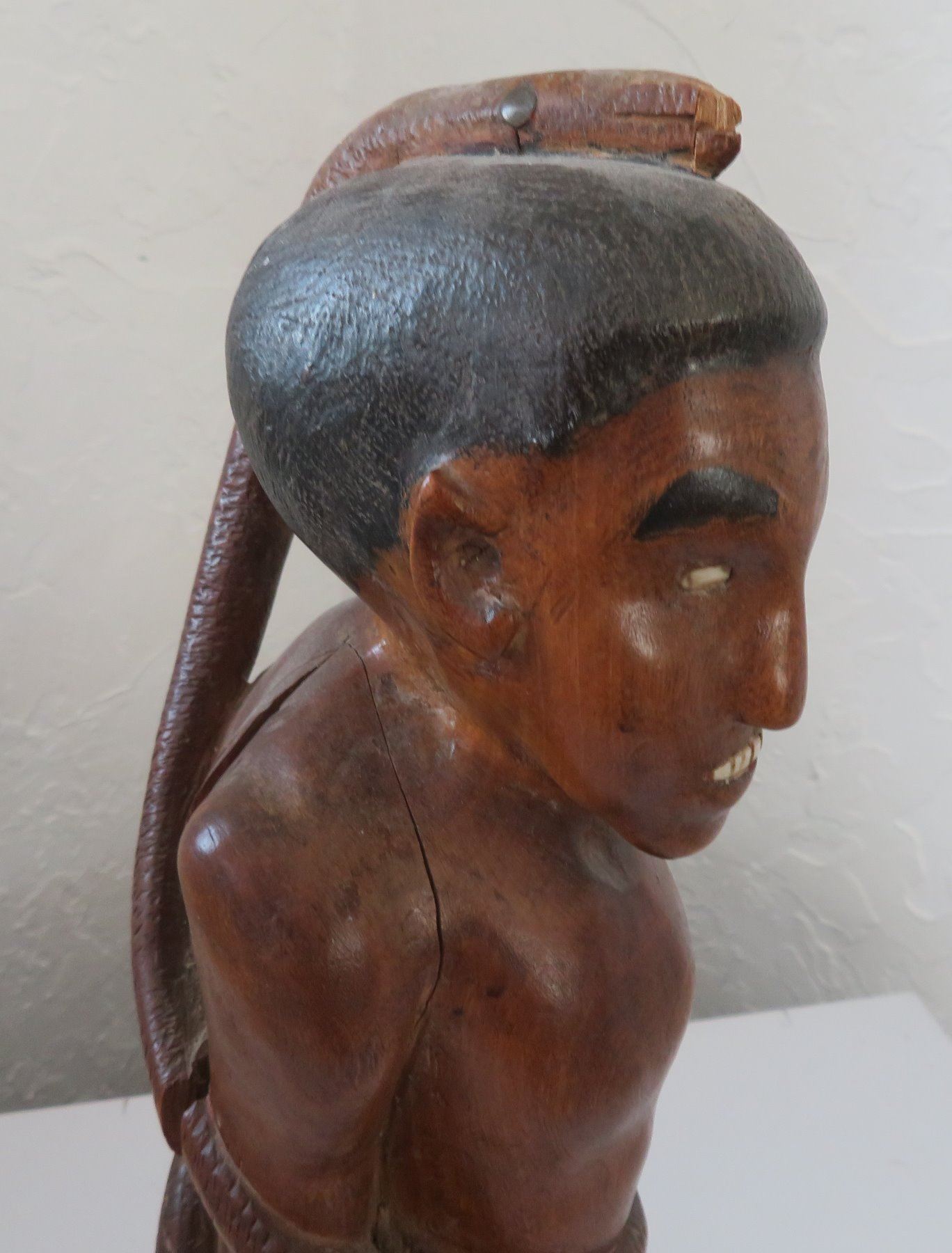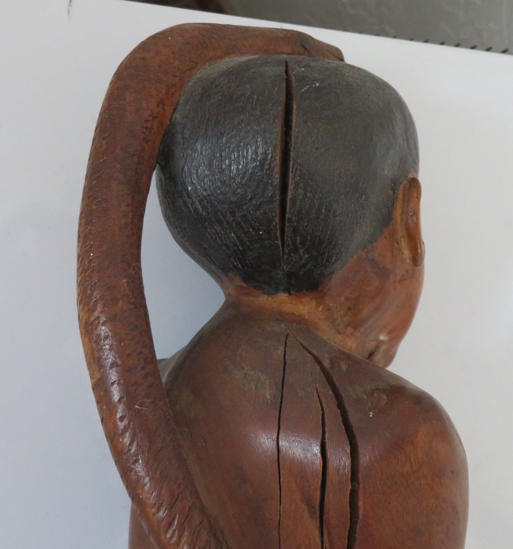 Polynesian Human Carving, c. 1940s. Made of wood, the item measures 14" tall. Solomon Islands. Condition: Cracks, see images. Shipping: $32.50 w/insurance and signature, due to length and value.