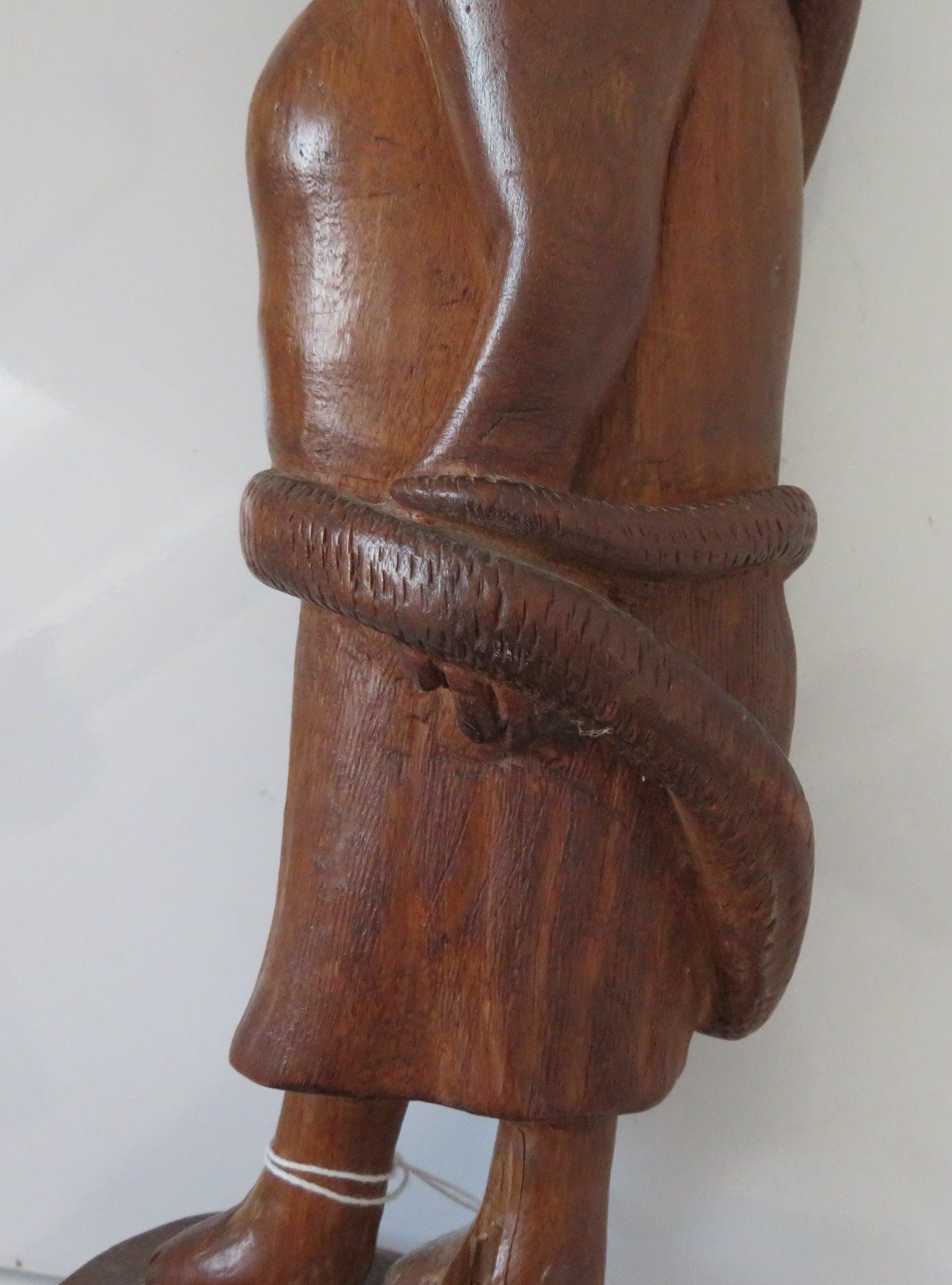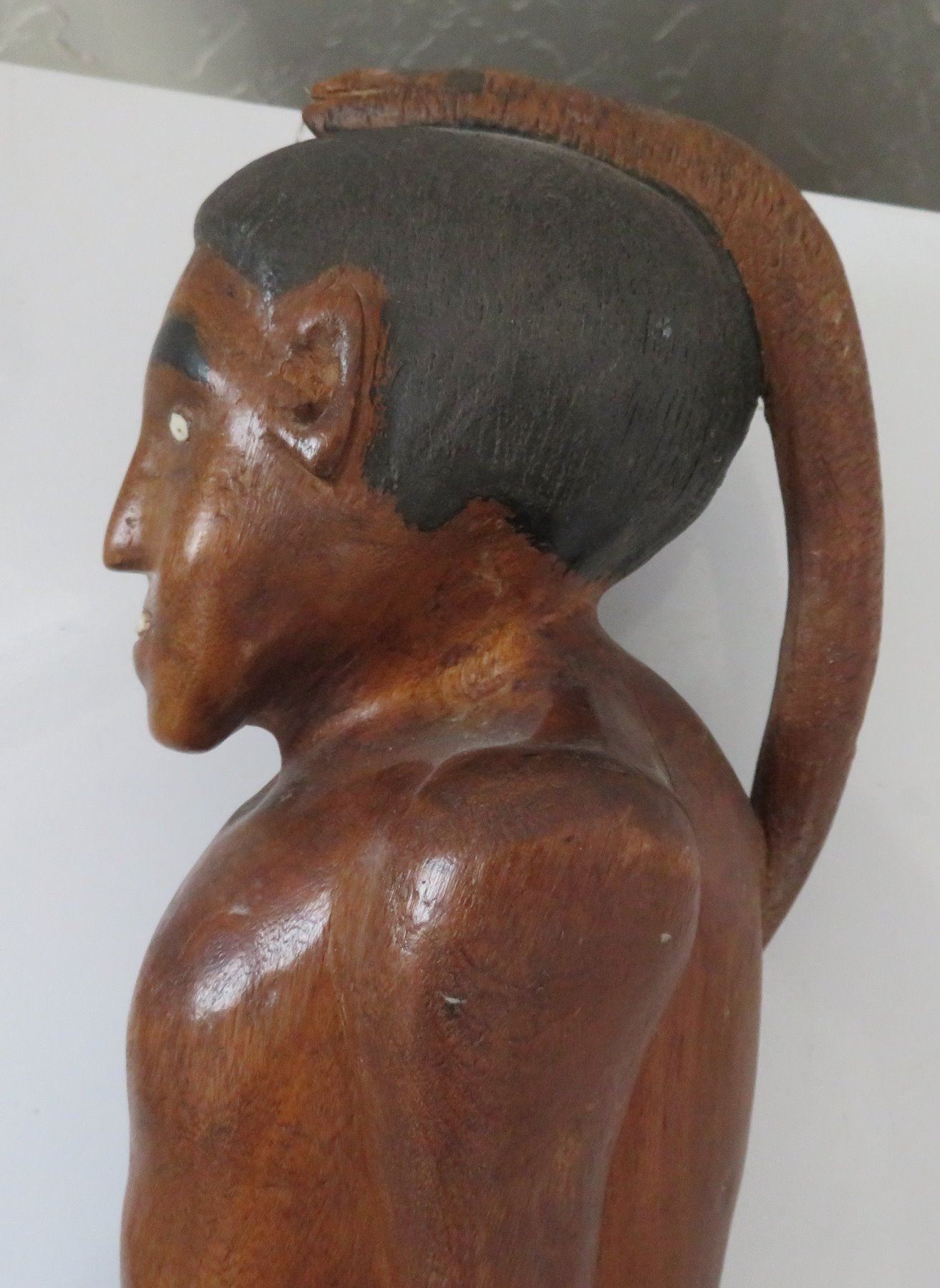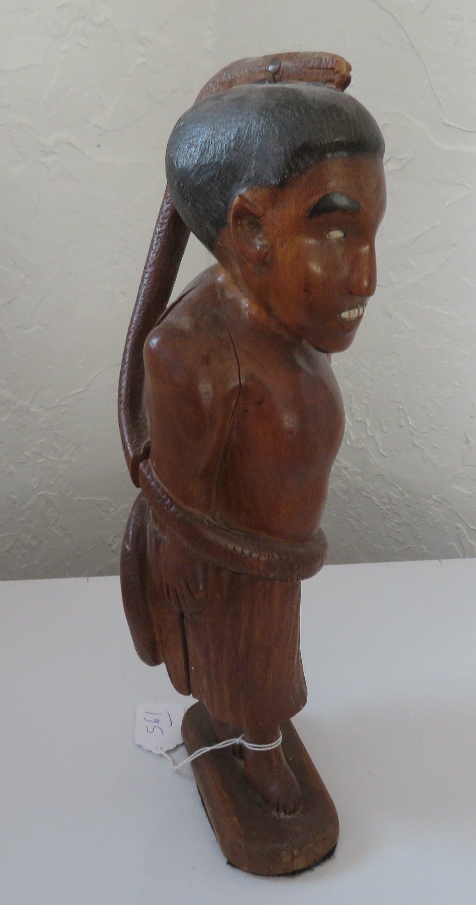 Polynesian Human Carving, c. 1940s. Made of wood, the item measures 14" tall. Solomon Islands. Condition: Cracks, see images. Shipping: $32.50 w/insurance and signature, due to length and value.
