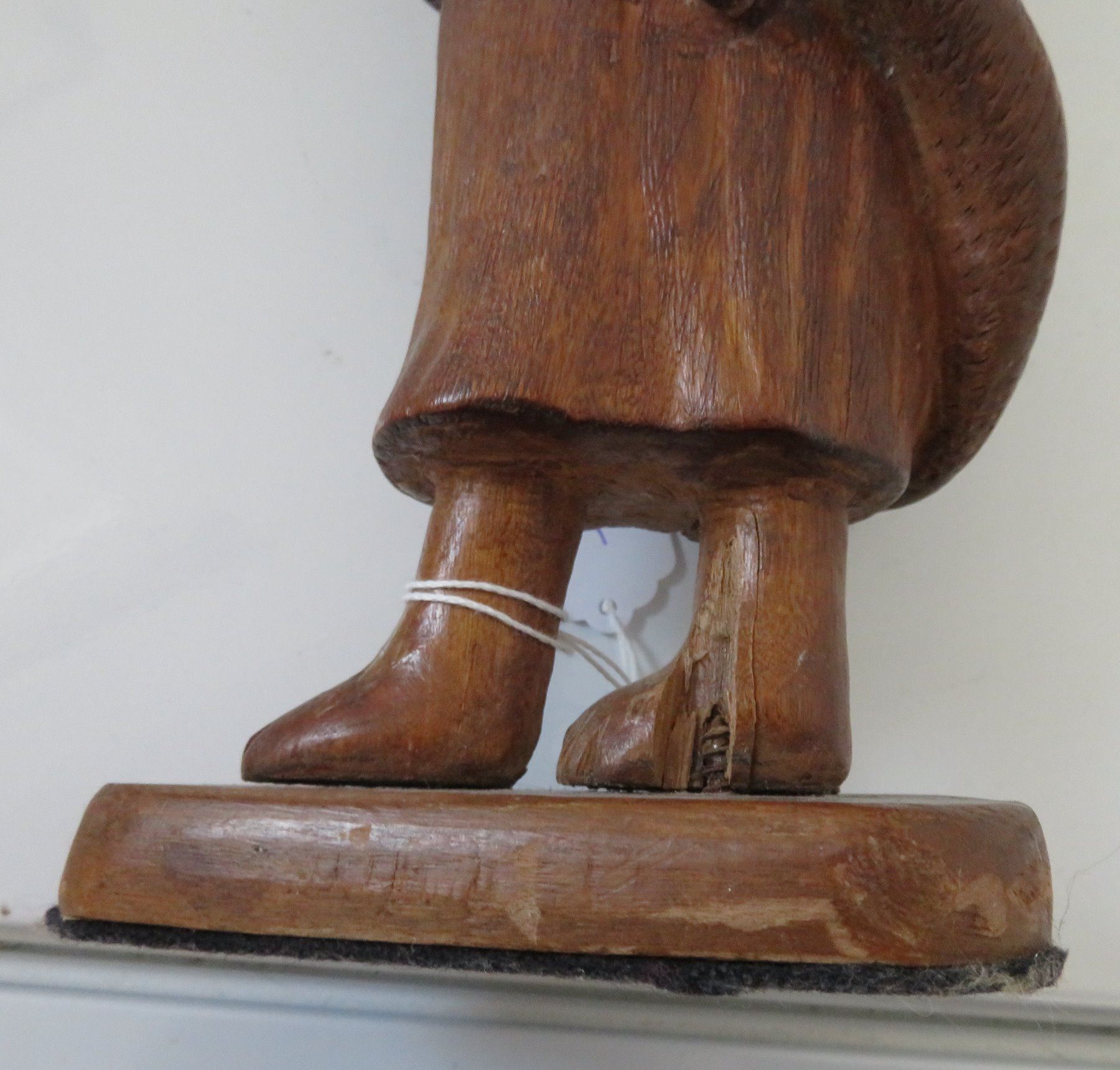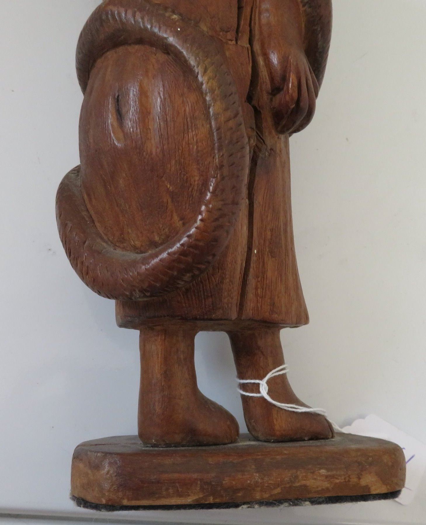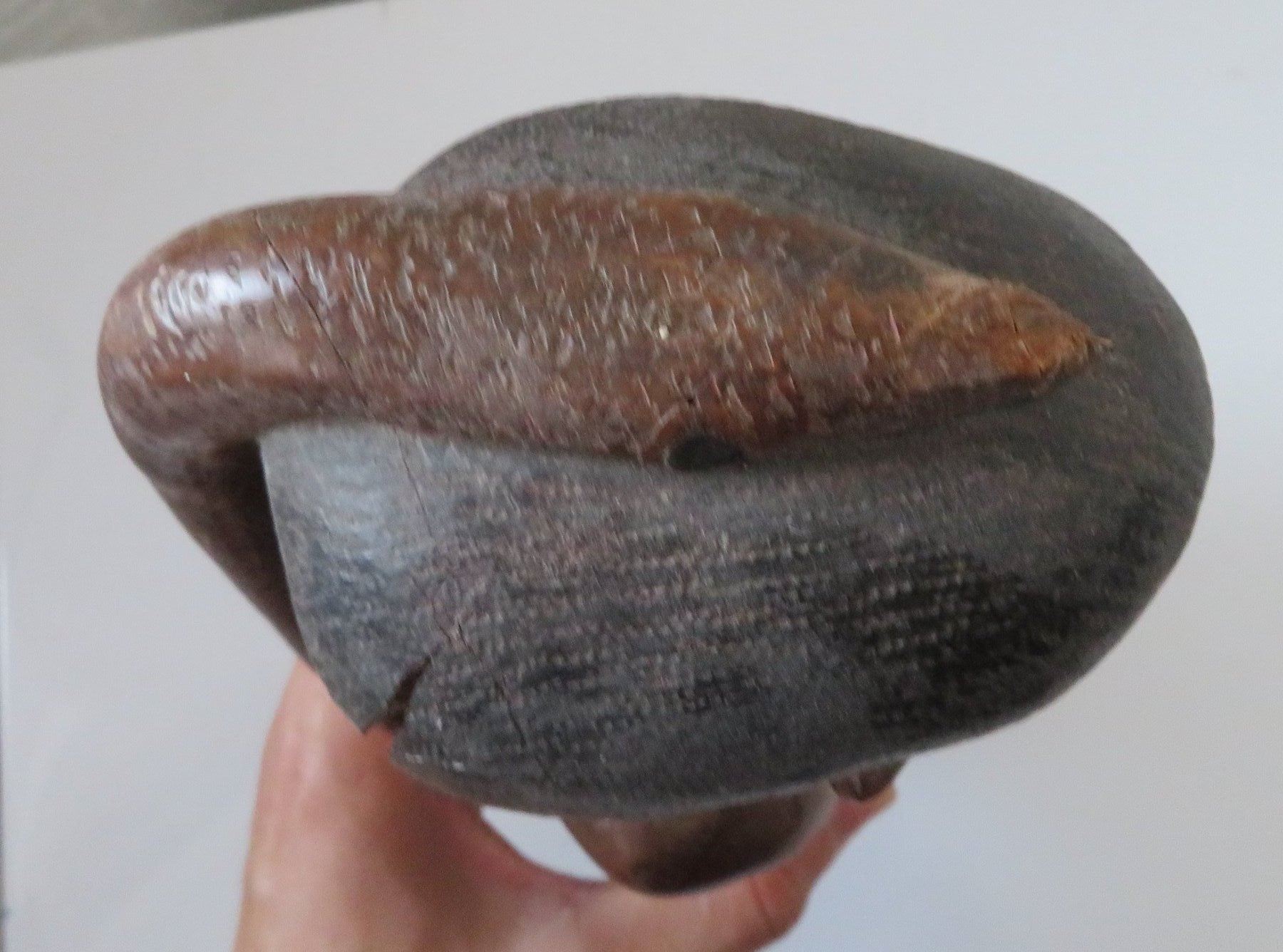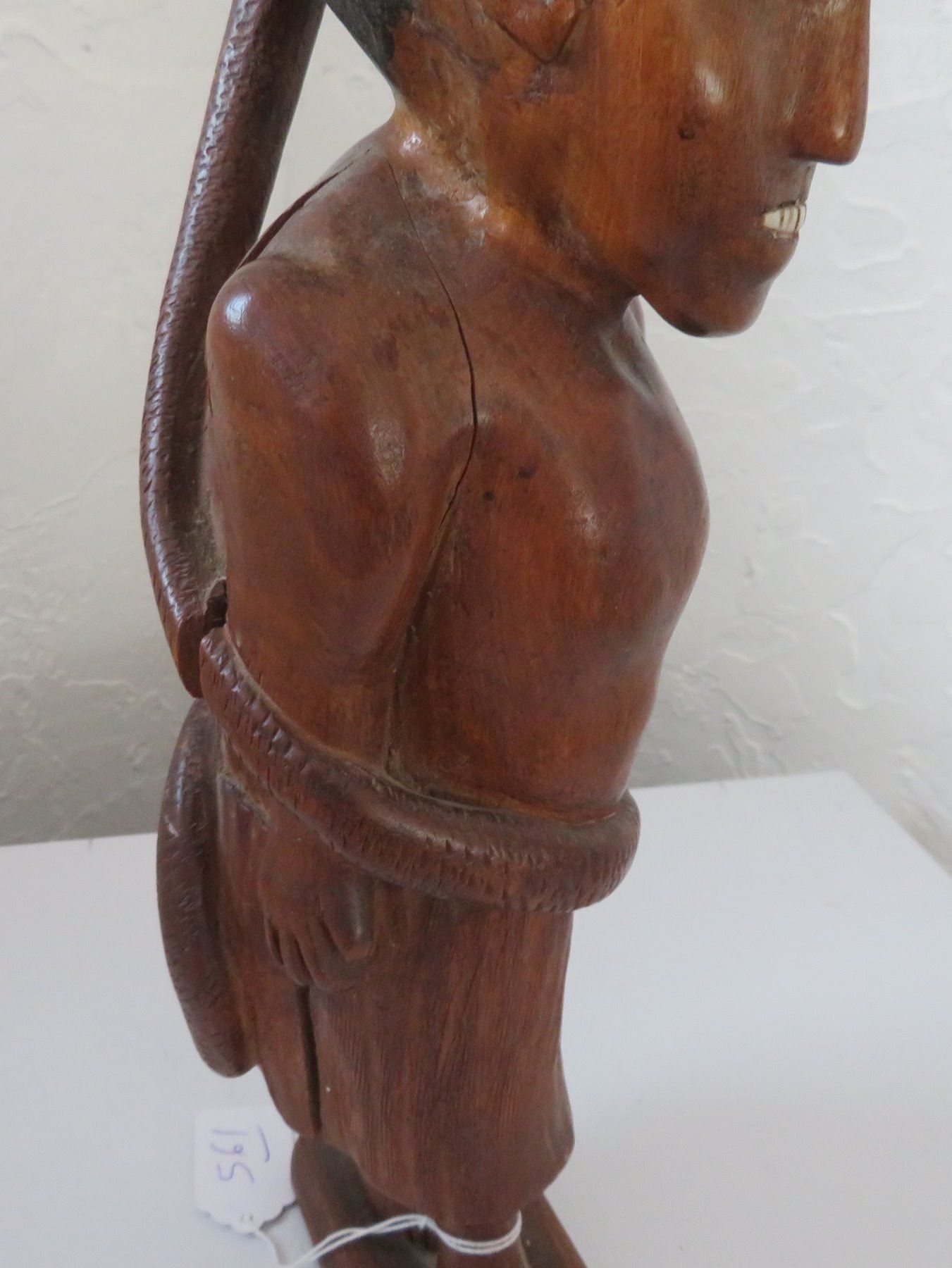 Polynesian Human Carving, c. 1940s. Made of wood, the item measures 14" tall. Solomon Islands. Condition: Cracks, see images. Shipping: $32.50 w/insurance and signature, due to length and value.