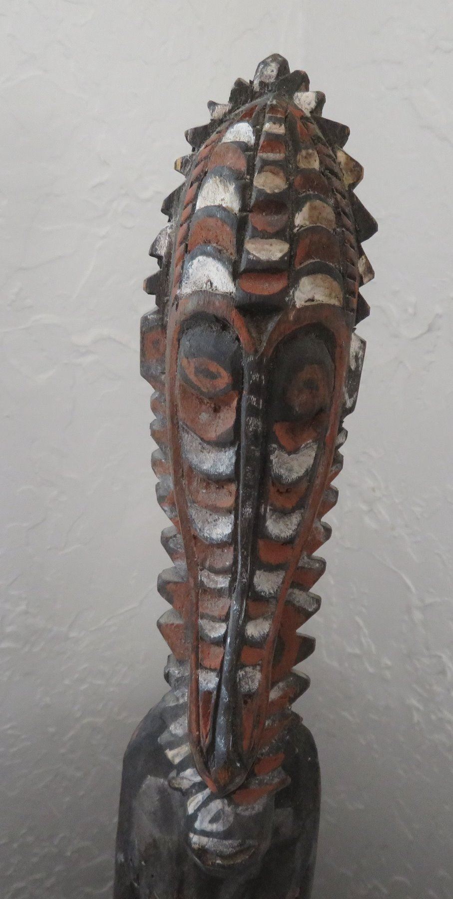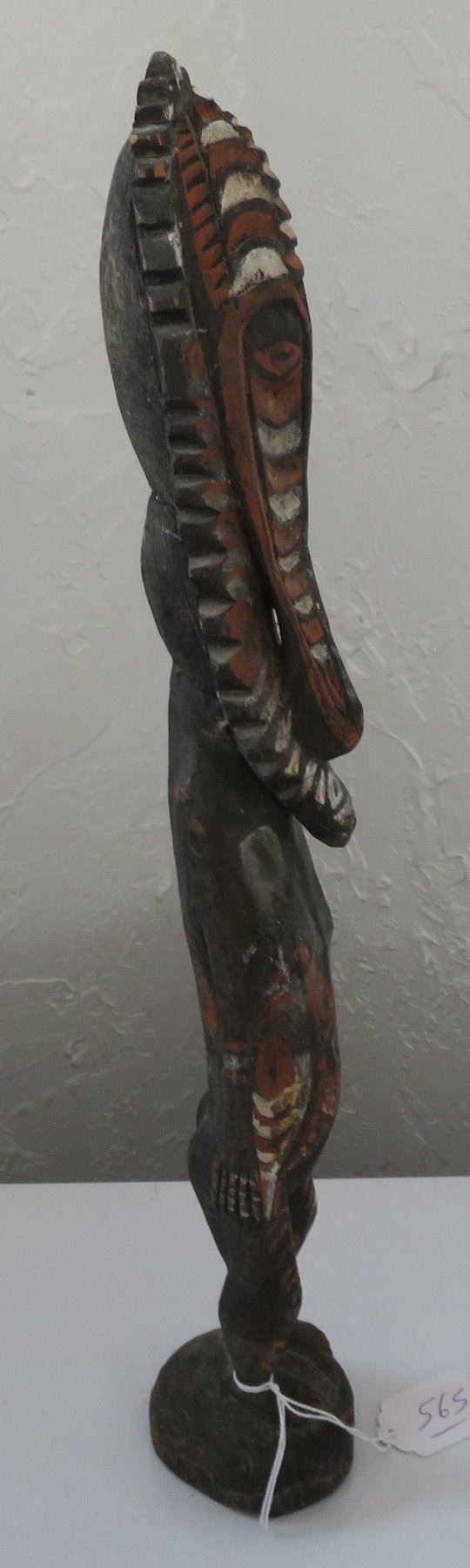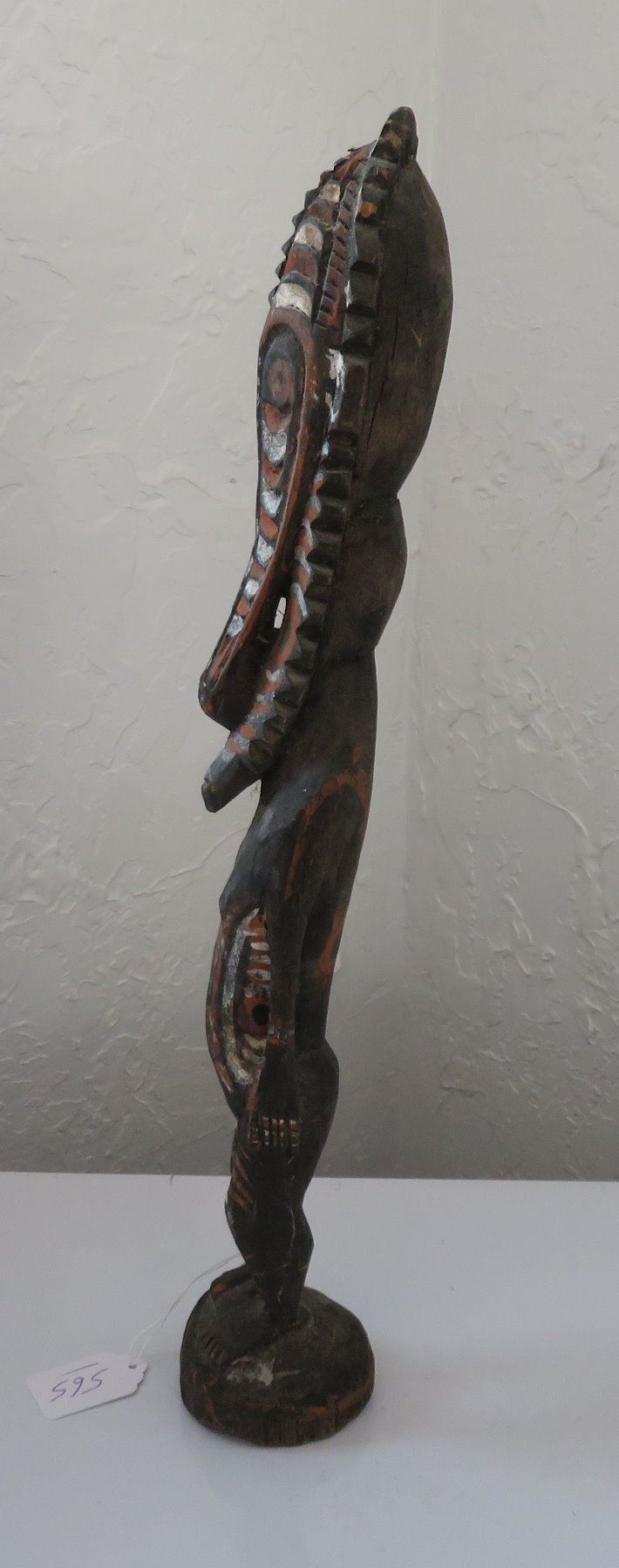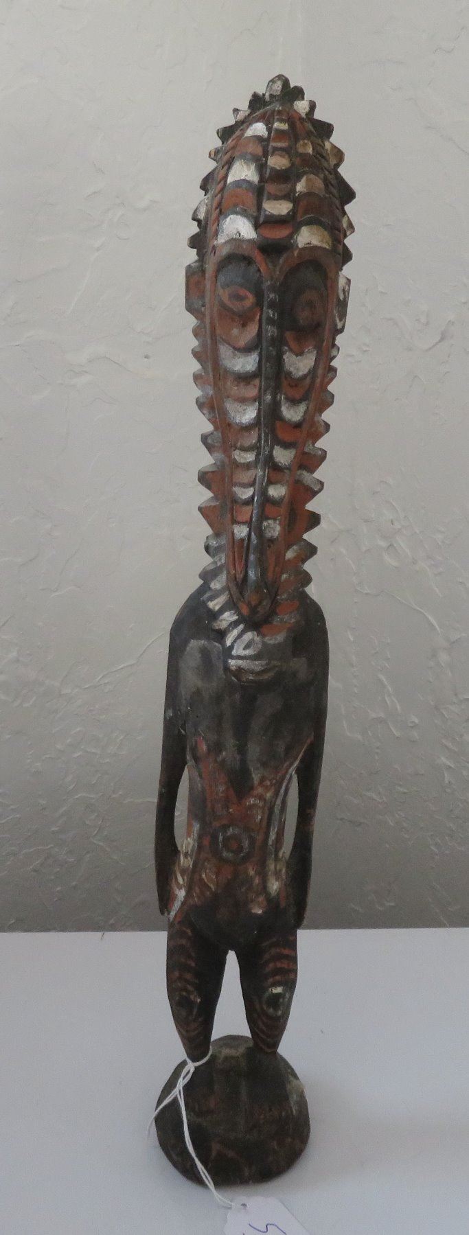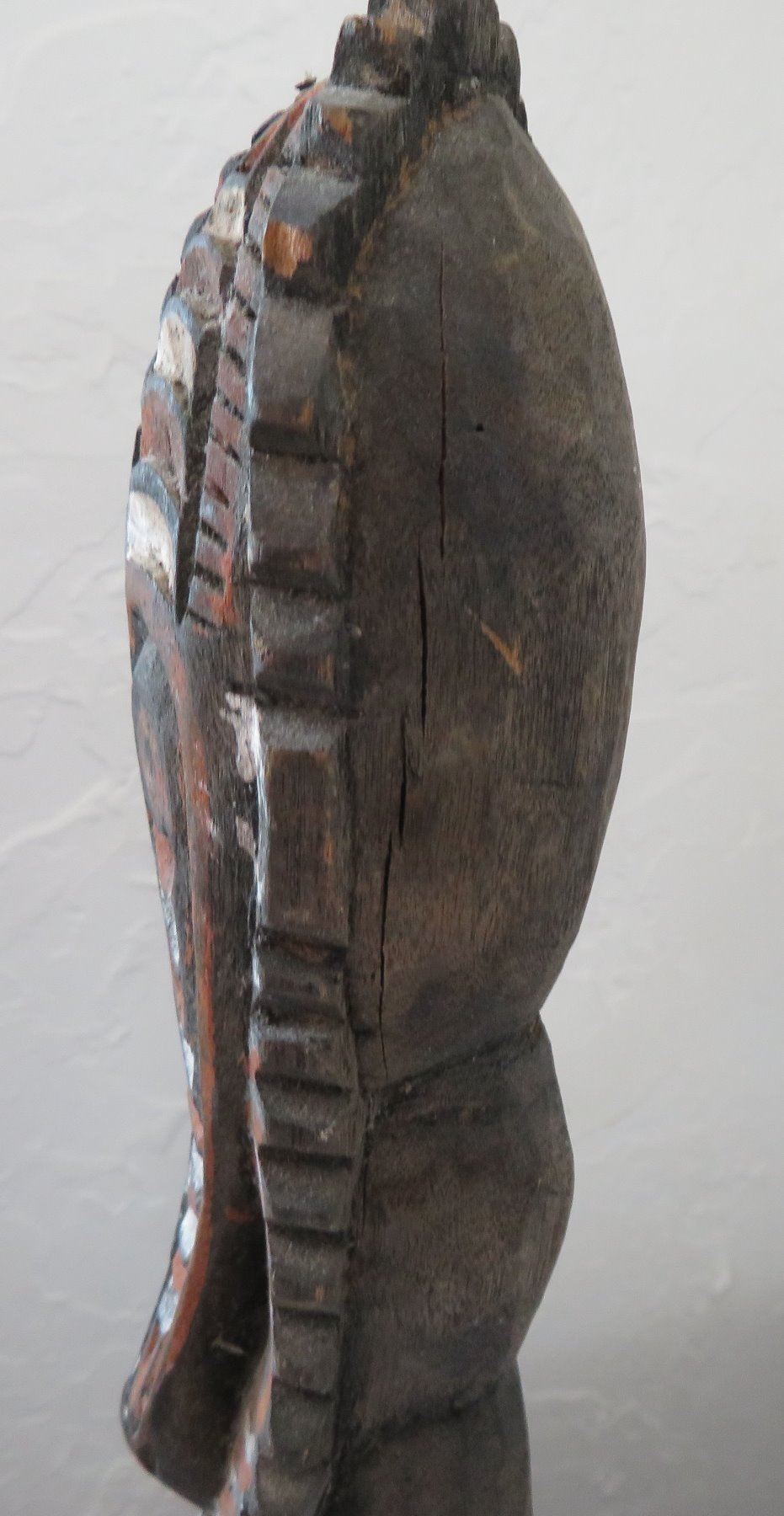 Polynesian Human Carving, c. 1940s. Made of wood and paint, the item measures 17" tall. Papua New Guinea. Condition: Minor scuffs, see images. Shipping: $32.50 w/insurance and signature, due to length and value.