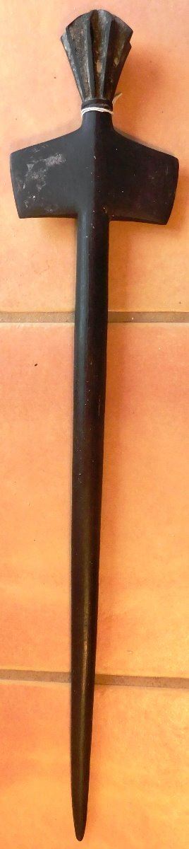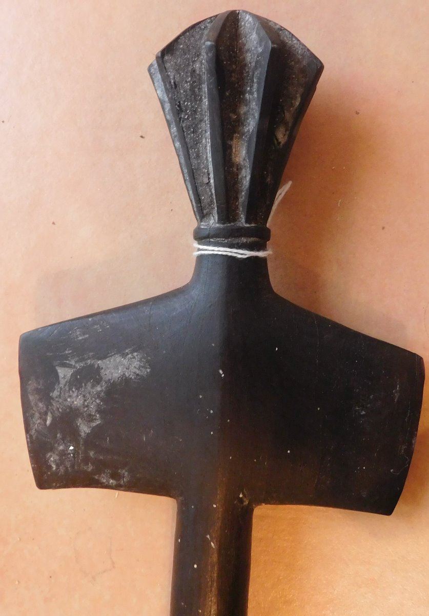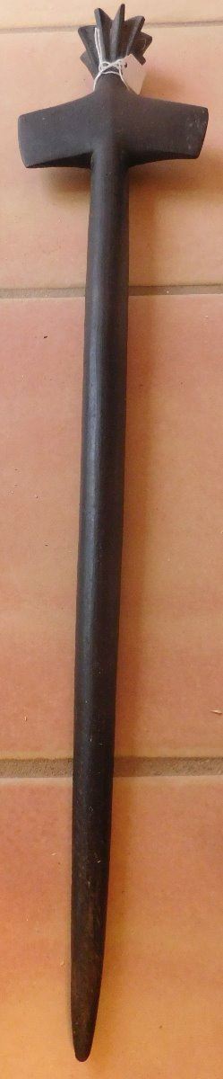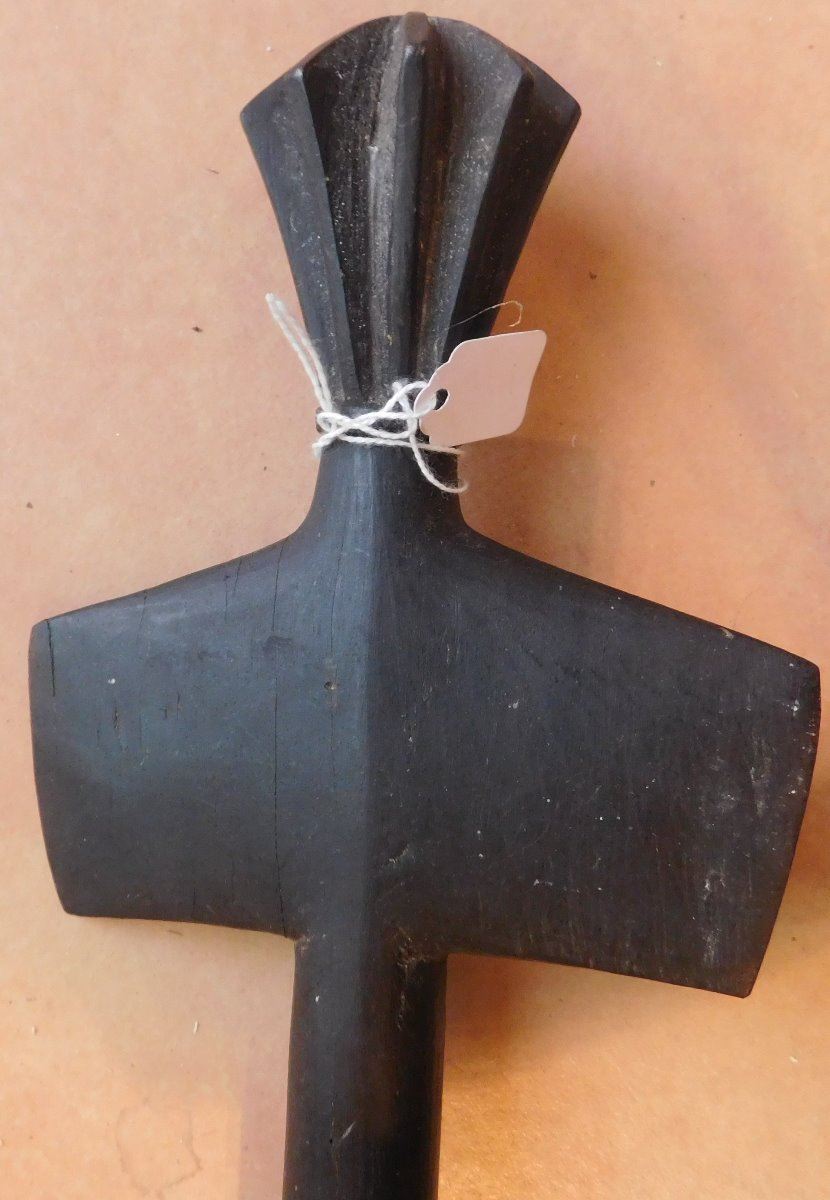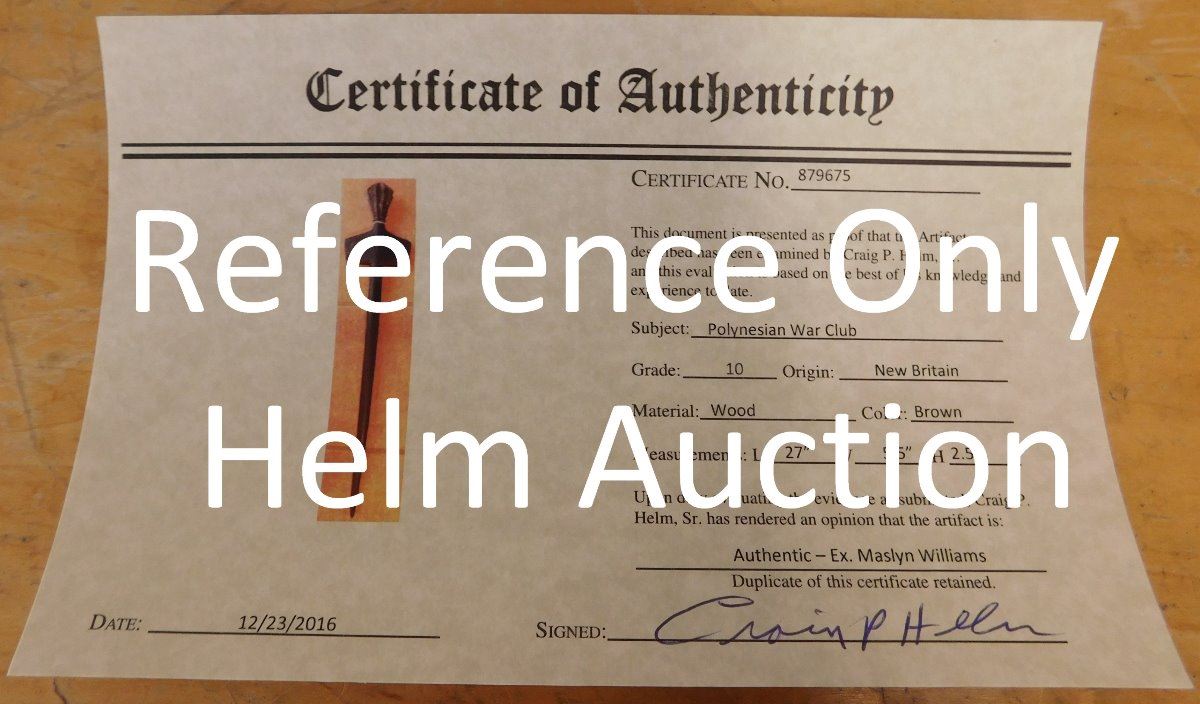 Polynesian War Club, circa WWII. Made of ebony-like hardwood, the item is 27" x 5.5" x 2.5". New Britain. Unusual striking surface. Ex. Maslyn Williams, author of Stone Age Island. Helm Certificate of Authenticity. Condition: Good, see images. Shipping: $32.00, due to size, w/insurance and signature.