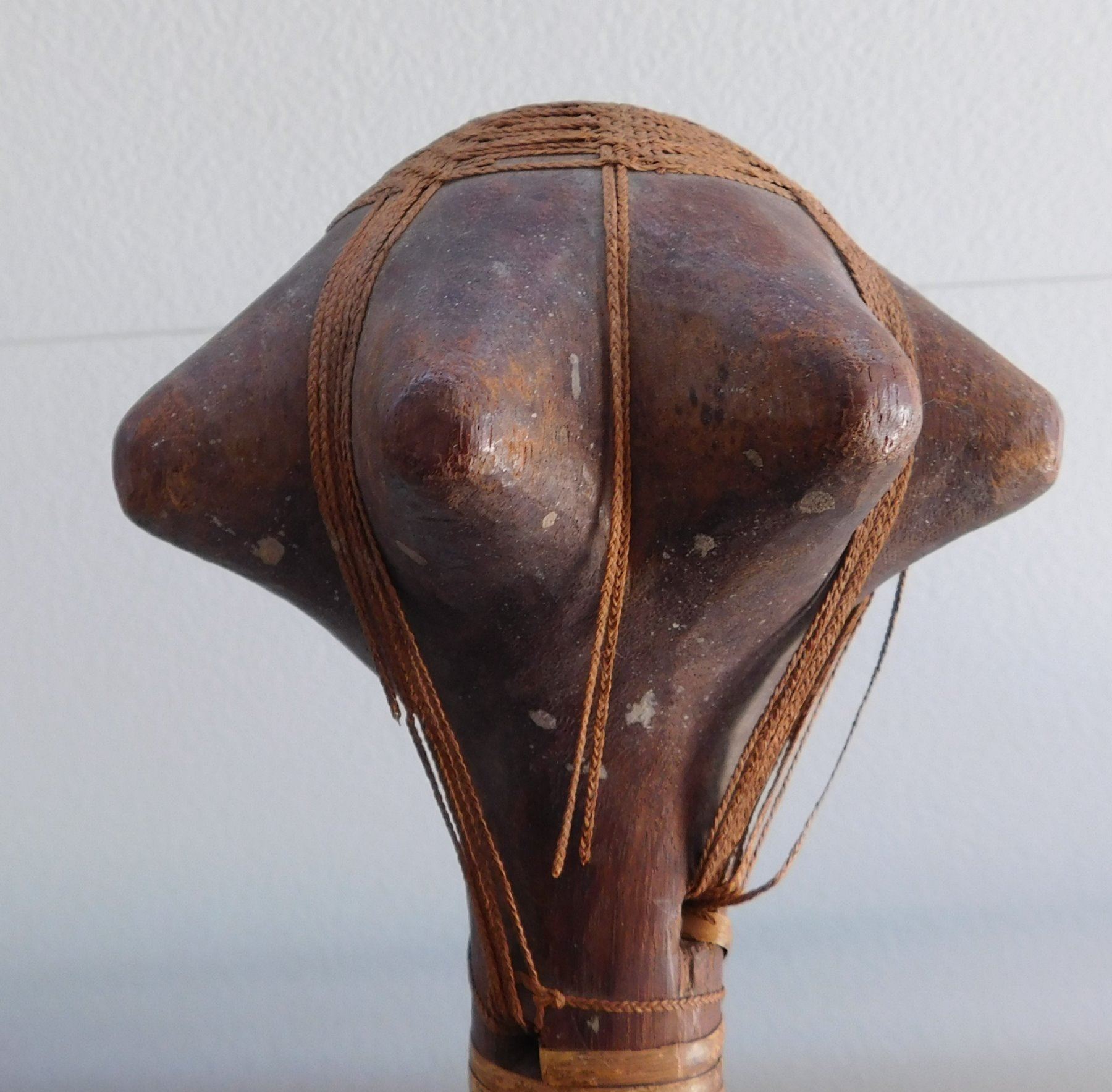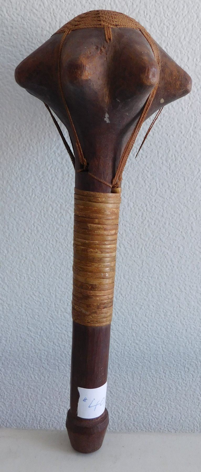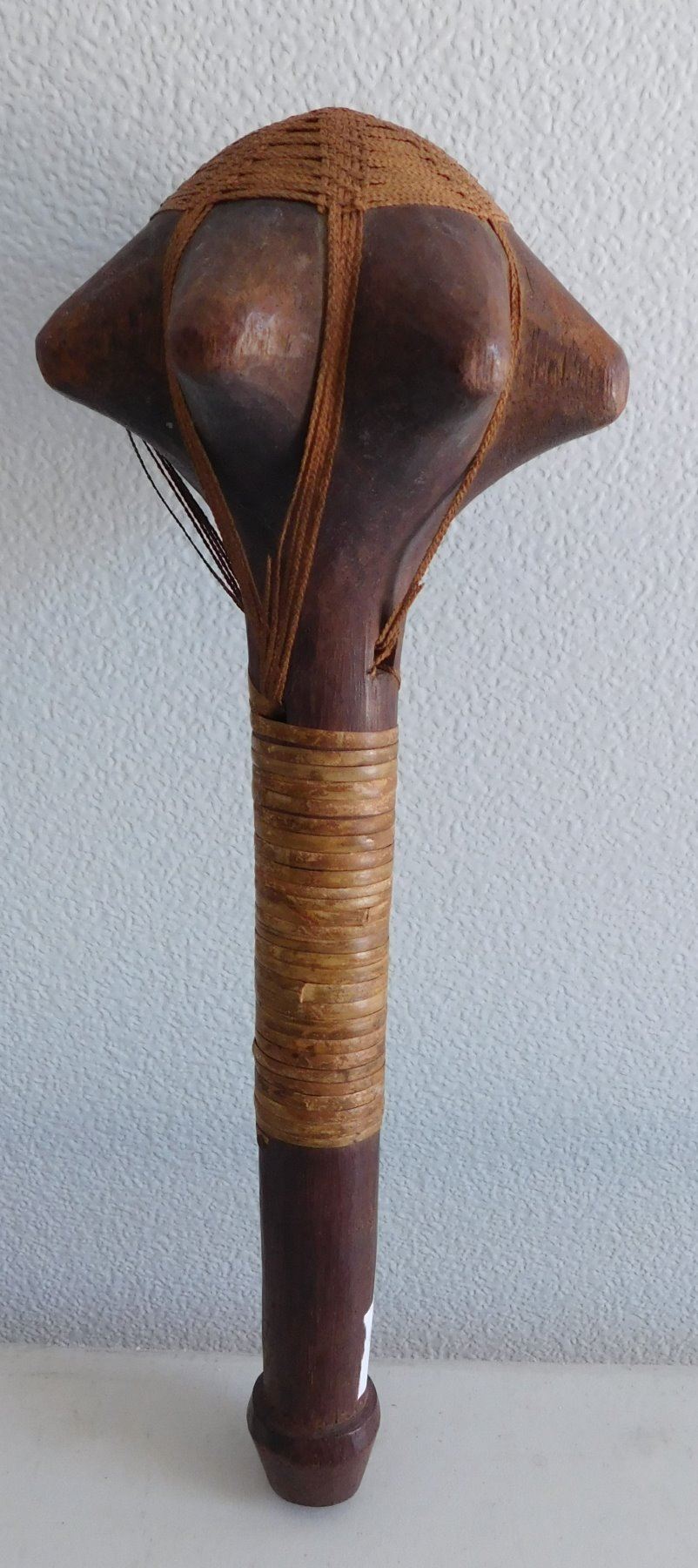 Polynesian War Club w/Helm COA, circa 1850s. This 19th century war club is made of wood and senet, measuring 4.5" x 4.5" x 13". Rennell Island, Solomon Islands. Helm Certificate of Authenticity. Condition: Some wear, some cordage broken, see images. Shipping: $45.00 w/insurance and signature, due to value.
