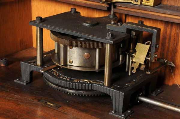 Description Walnut with 15 discs. Working. Condition (Good). Size 19 - 5/8".