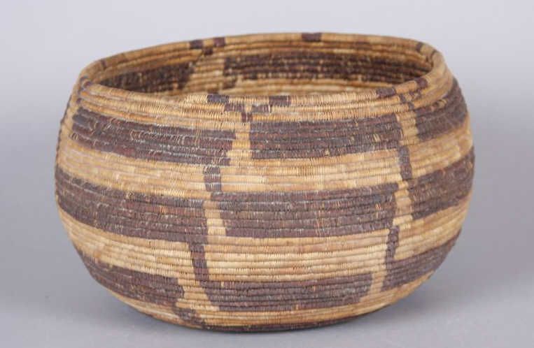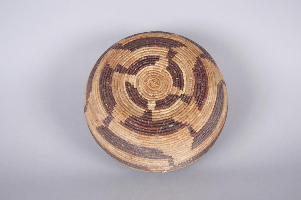 Pomo Basket from Central CaliforniaGeometric design, 1 shell decoration, measures 6 1/4"Hx8 3/8"dia