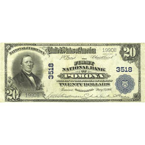 Pomona, CA - $20 1902 Plain Back Fr. 651 The First NB C
