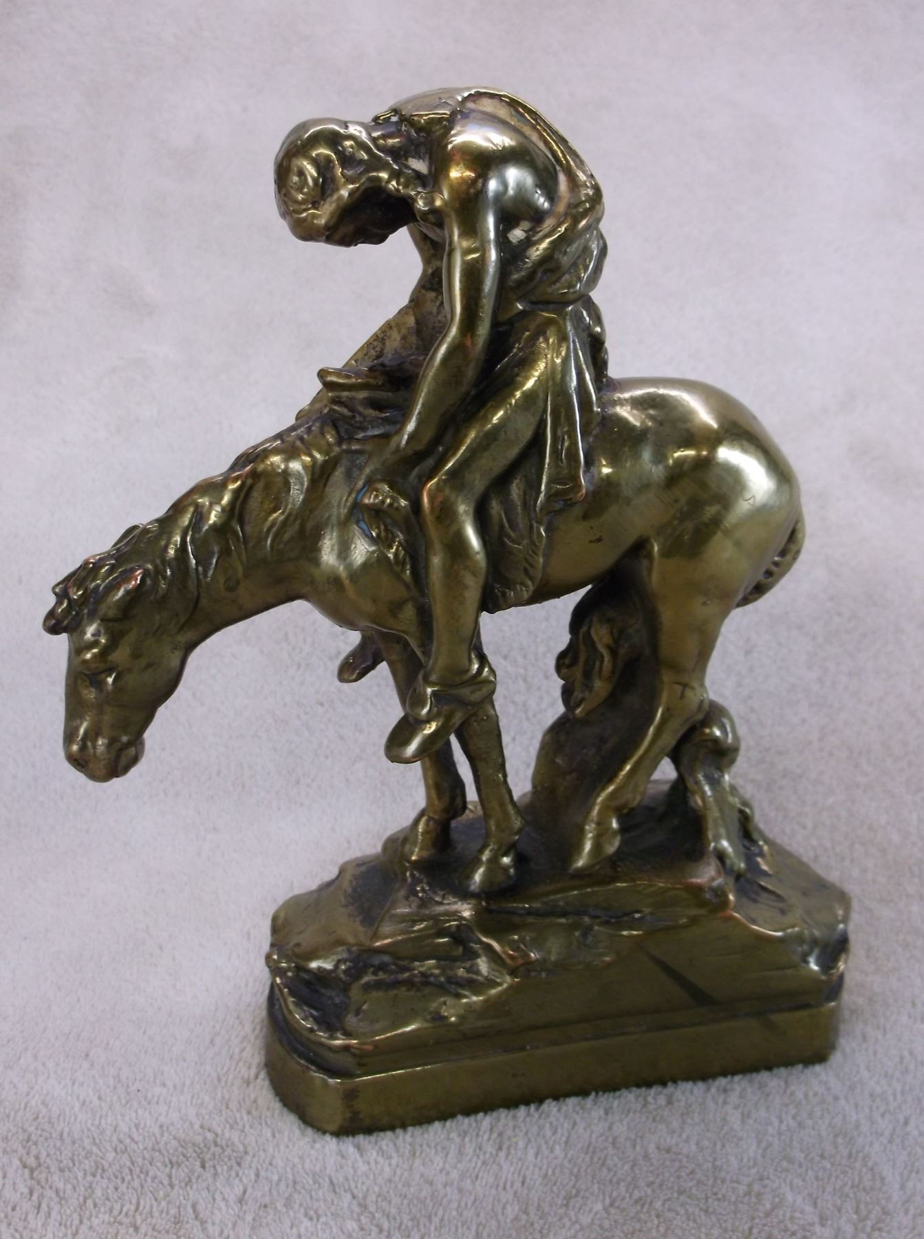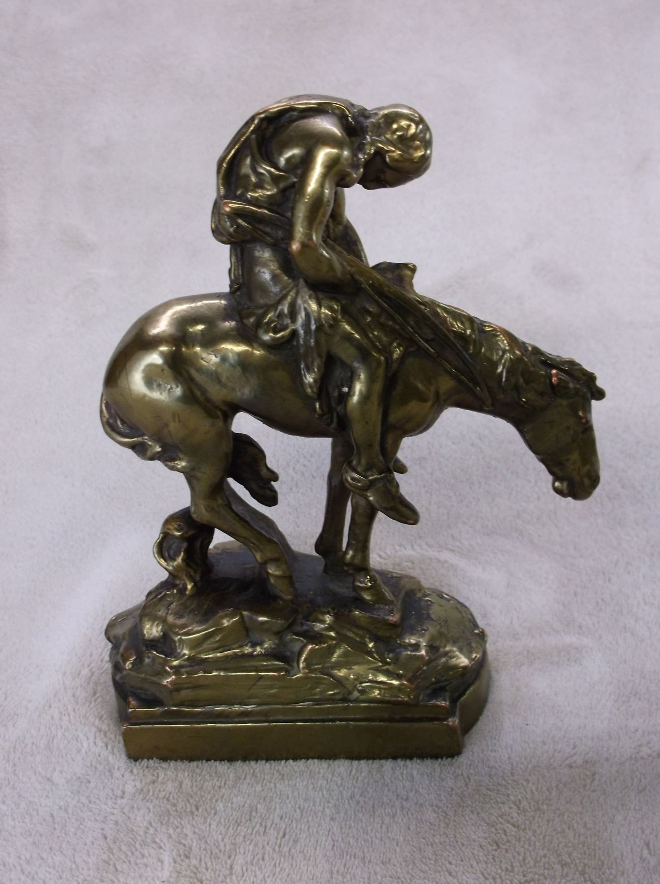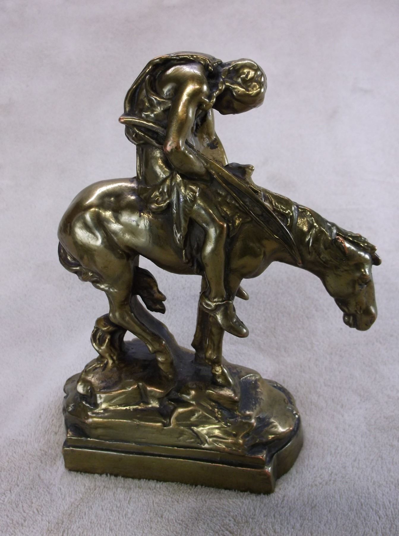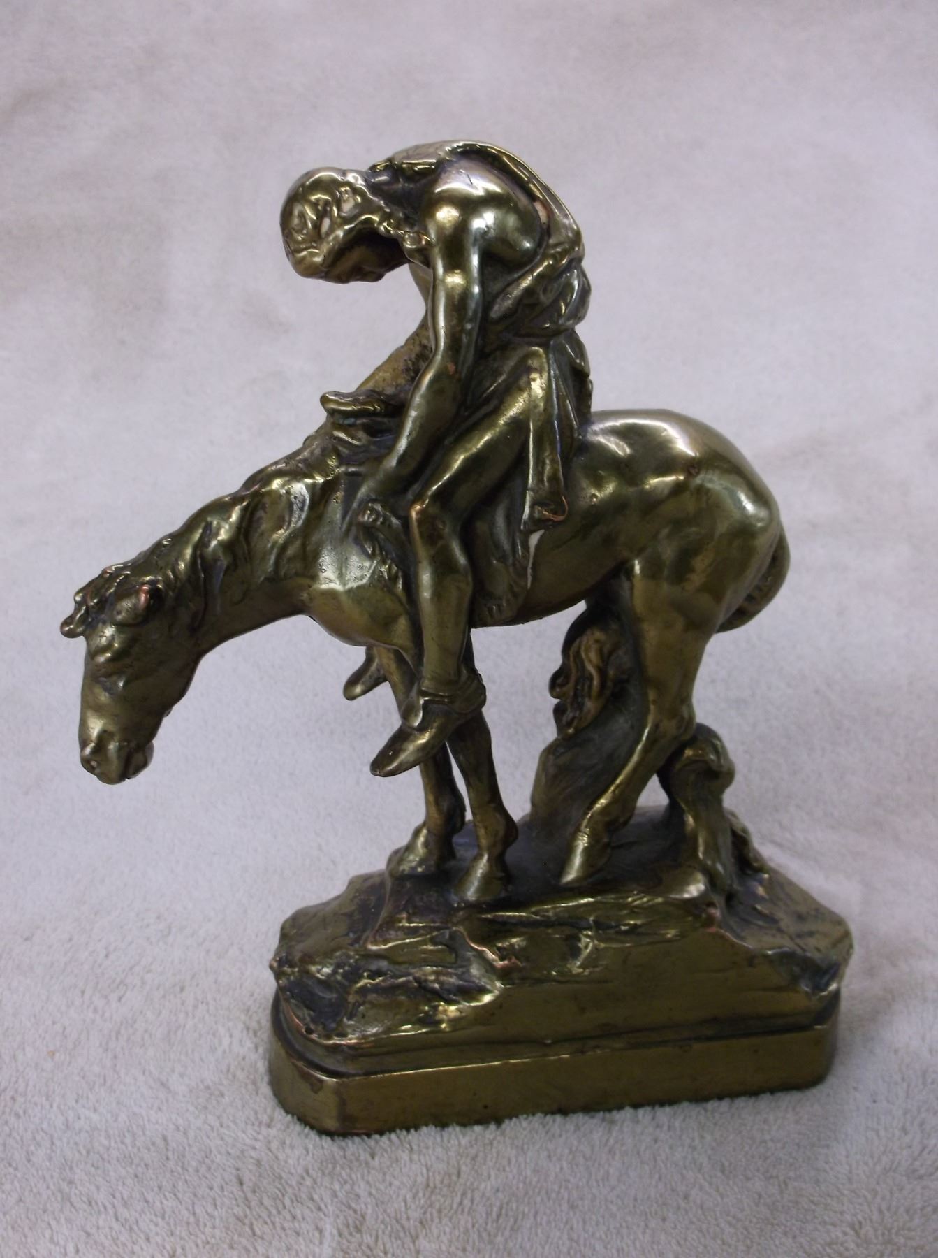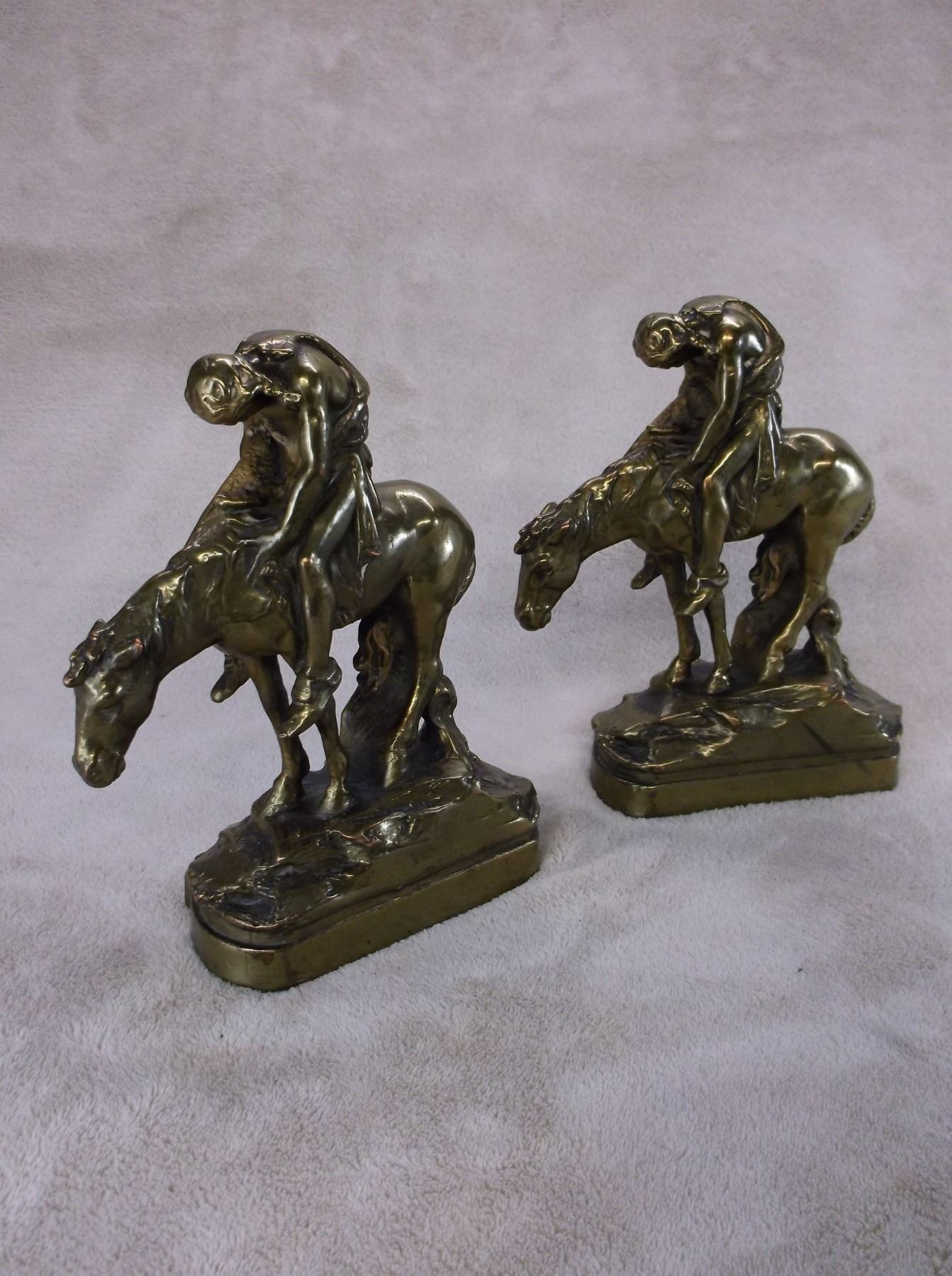 Pompeian Bronze End of Trail Bookends- #147- 8"H X 5.25"L X 2.5" D