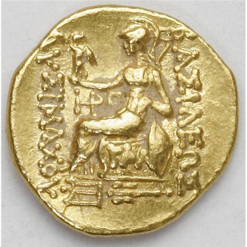 <B>Pontic Kingdom. Mithradates VI.</B></I> 120-63 B.C. AV stater (18 mm, 8.25 g). Kallatis, during the First Mithradatic War, ca. 88-86 B.C. Diademed head of the deified Alexander right, with horn of Ammon / Athena seated left, holding Nike, left arm resting on shield, spear behind; trident in exergue. AMNG I 266. Good VF.