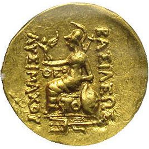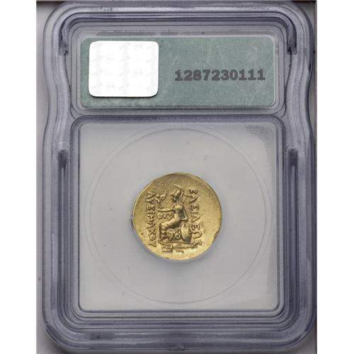 <B>Pontic Kingdom. Mithradates VI.</B></I> 120-63 B.C. AV stater (20 mm). Tomis, time of the First Mithradatic War, 88-86 B.C. Diademed head of the deified Alexander right, wearing horn of Ammon / Athena seated left, elbow resting on shield, holding Nike; ornamented trident and pellet in exergue. AMNG I 2481. AU55 ICG.