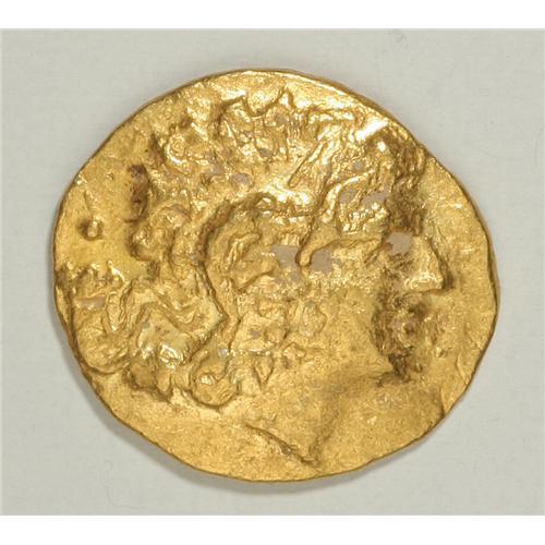 <B>Pontic Kingdom. Mithradates VI.</B></I> 120-63 B.C. AV stater (19 mm). Tomis, during the First Mithradatic War, ca. 88-86 B.C. Diademed head of the deified Alexander right, with horn of Ammon / Athena seated left, holding Nike, left arm resting on shield, spear behind; trident in exergue. De Callatay pg. 141. <B>Good VF,</B></I> die rust. <BR><BR><b>Shipping:</b> Coin/Currency (<a target="_blank" href="http://www.heritageauctions.com/common/shipping.php">view shipping information</a>)