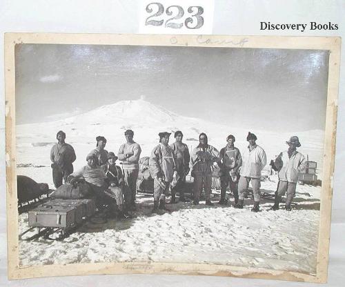 (Ponting, Herbert) Original photographic print from a photo by Ponting. Identified in Savours' book "Scott's Last Voyage" as "The Southern Party just before leaving on the southern journey, 26 January 1911". 12 1/2" x 9" horizontal, lightly mounted on slightly larger card stock. Old label of J. B. Pond Lyceum Bureau on back. The image very good - clean & crisp.