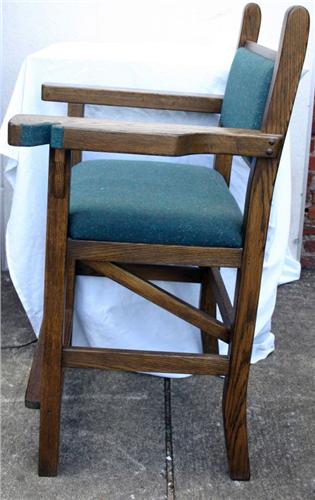 Pool room chair in oak. Has cutout for pool cue as most do. In good original condition.
