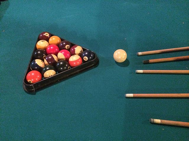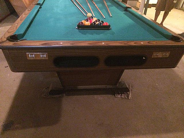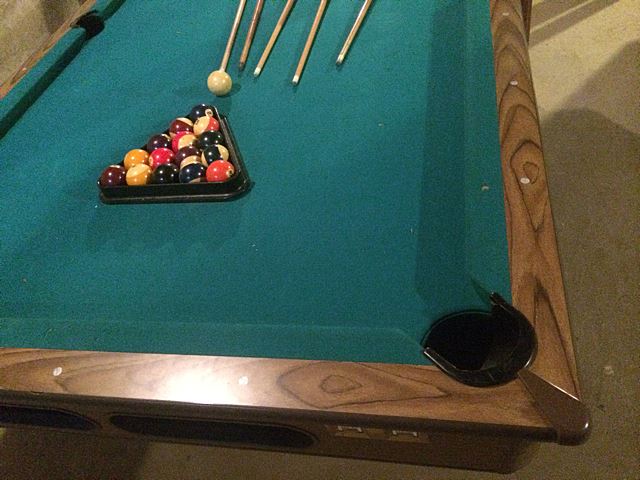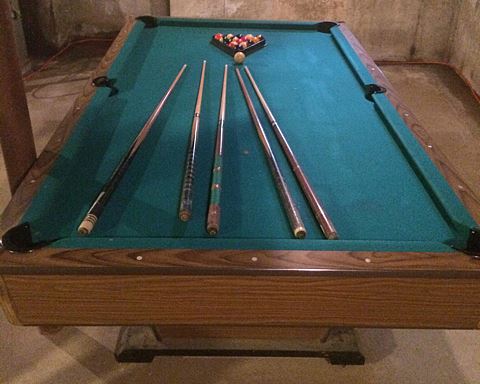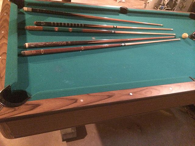 Estate pool table, complete with pool cues and balls. Great item for Dad on Father's Day! Felt in very nice condition. Bring it home and play today! Local buyers take note: These items are at Litchfield, CT Estate and can be picked up at the estate.
