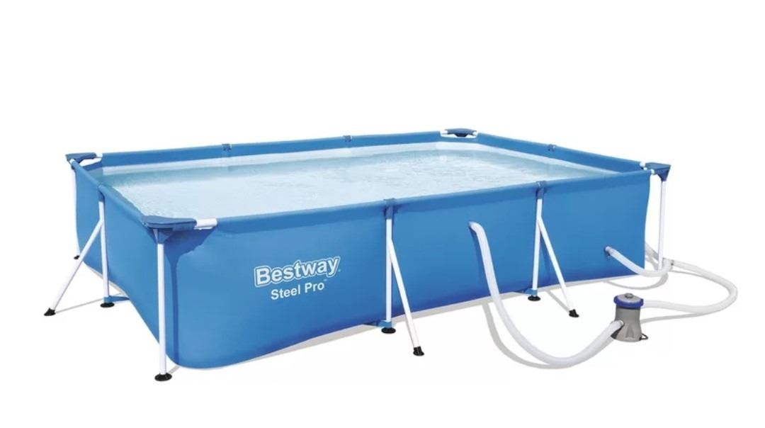Bestway 9.8' X 6.6' X 26" Steel Rectangular Above Ground Swimming Pool Set, Open Box, Like New Condition