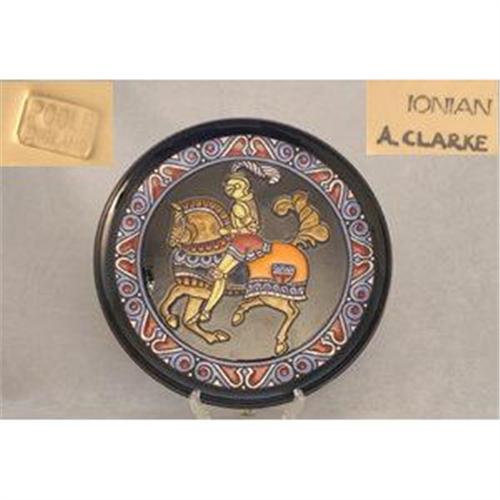 Poole Pottery Plaque Ionian Range Decorated With A Knight On Horseback Signed To Base A. Clarke c1974