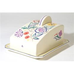 Poole Pottery traditional cheese dish and cover, hand painted with stylised flowers, marks to base, 20cm long