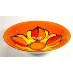 Poole pottery Delphis abstract patterned bowl decorated in oranges, yellows and red, Poole marks …