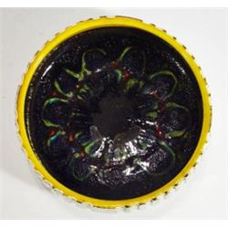 Poole pottery Delphis bowl with carved outer edge decorated with an abstract blue, green and black pattern, 20cm diameter