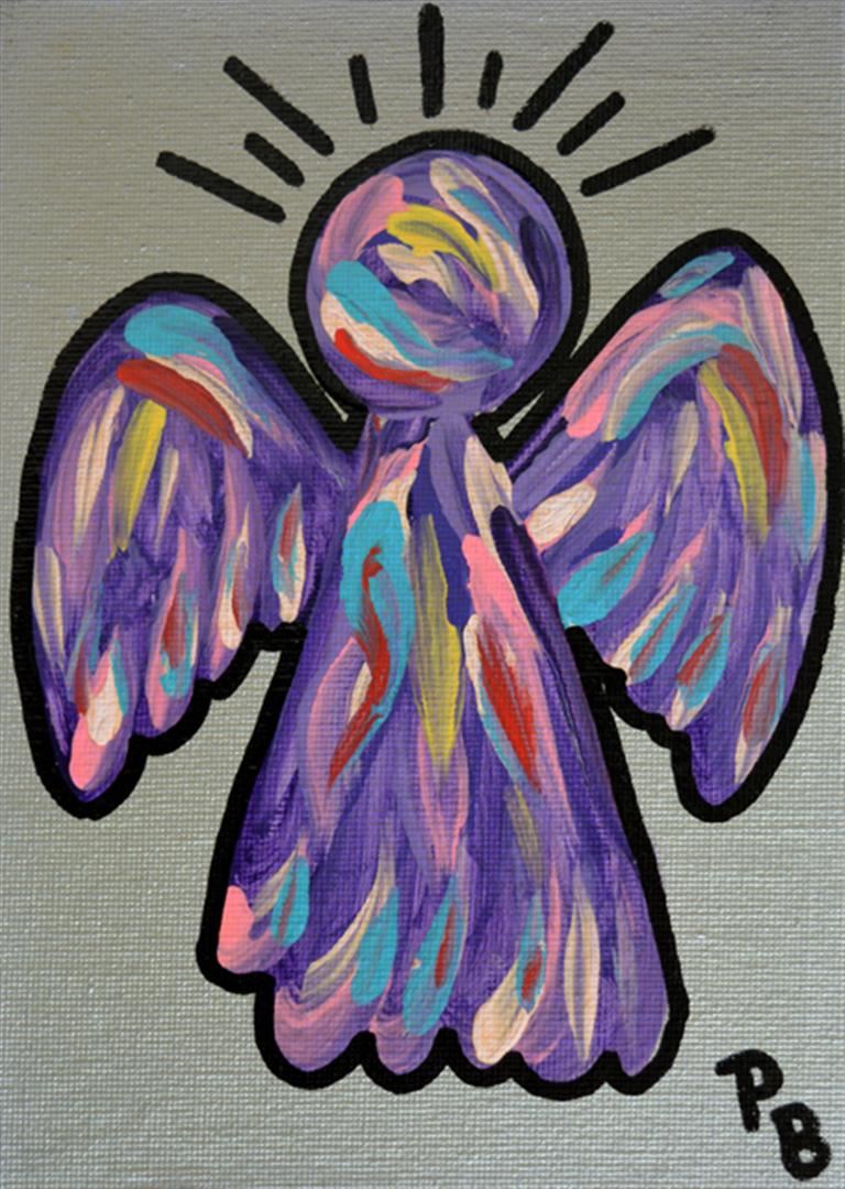 Artist: Parker Beaudoin - Title: Guardian Angel - Medium: Original Acrylic on Board - Signature: This one-of-a-kind work is hand-signed by the artist at the bottom of the image - Image Size: Approximately 7 inches x 5 inches - Framed: Unframed - Details: This work comes with a Certificate of Authenticity - Biography: Born in 1985, Parker Beaudoin, is a world famous tattoo artist most commonly known in the tattoo world as "Wingnut" He is West Palm Beach, Florida's newest upcoming abstract/pop art artist. Ever since Parker was able to hold a crayon, his life has been surrounded by art. Through the multitude of struggles he has faced, art has always been there. It is a way to escape, a way to express, and a way to give hope to others. From intriguing abstract works to realistic styles brought to life, Parker's work is meant to be inspiring and enlightening to anyone who views it. - Parker's artwork has inspiration from quite a few different artists. Two artists that have influenced his life from a young age are Keith Herring and Peter Max. Parker works with a range of mediums, from drawings and sketches to watercolors and acrylics. His style is a range from abstract and pop art to modern realist. He takes the basic ideas of symbols and everyday things and creates an image that becomes appealing to the beholder. From his bright, bold, vivid colors and abstract shapes it brings a new vision to each viewer, and gives feelings of emotions and comfort. His artwork was also published in the 2015 Hidden Treasure art magazine yearbook.