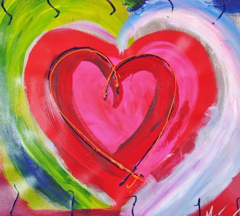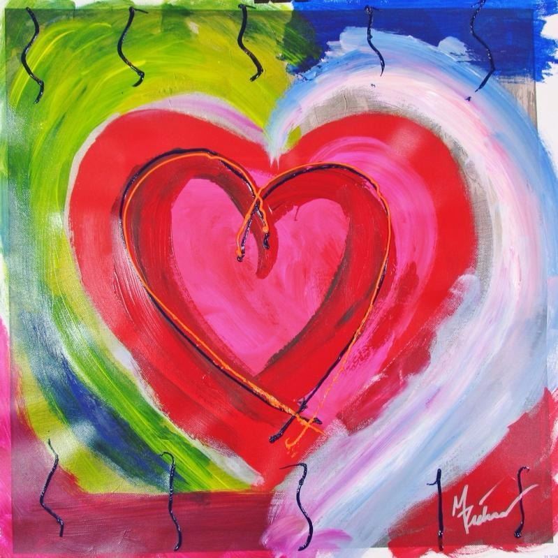 Max Richards | Title of Art: Heart Series III | Medium: Hand Signed by the Artist Original Painting on Canvas | Edition #: Original | Unframed Size: 19 x 19 inches | Offered Unframed. Framing Presentation are often shown for concept only. Read description: If framed, framed size will be given | Value: $ 500