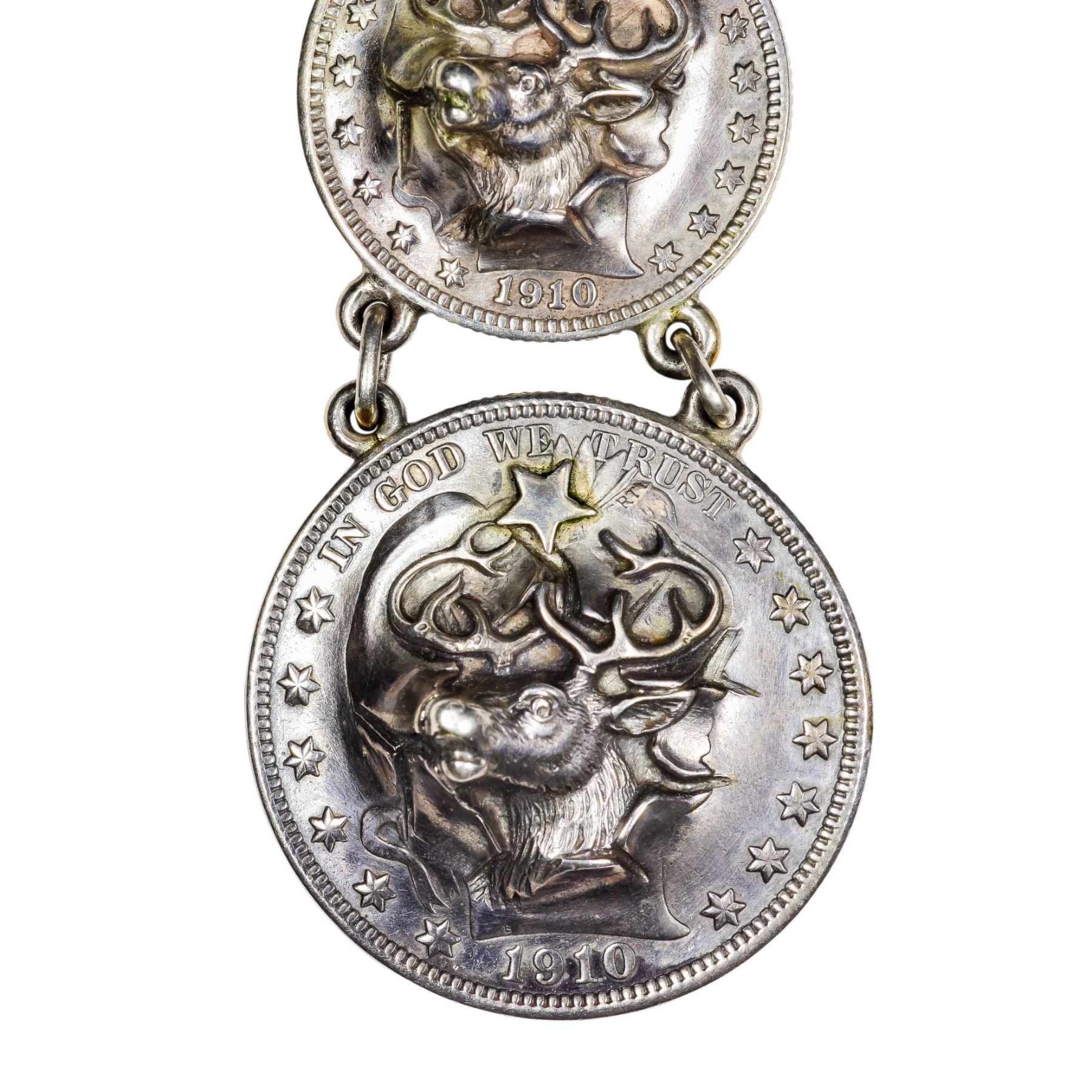Pop-Out. 1910 Dime, Quarter, and Half Dollar Fob. Overall Choice EF.