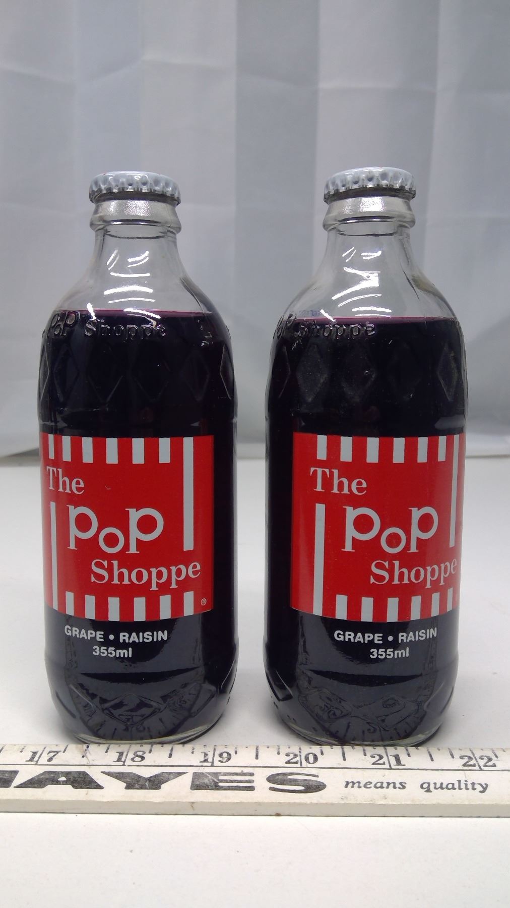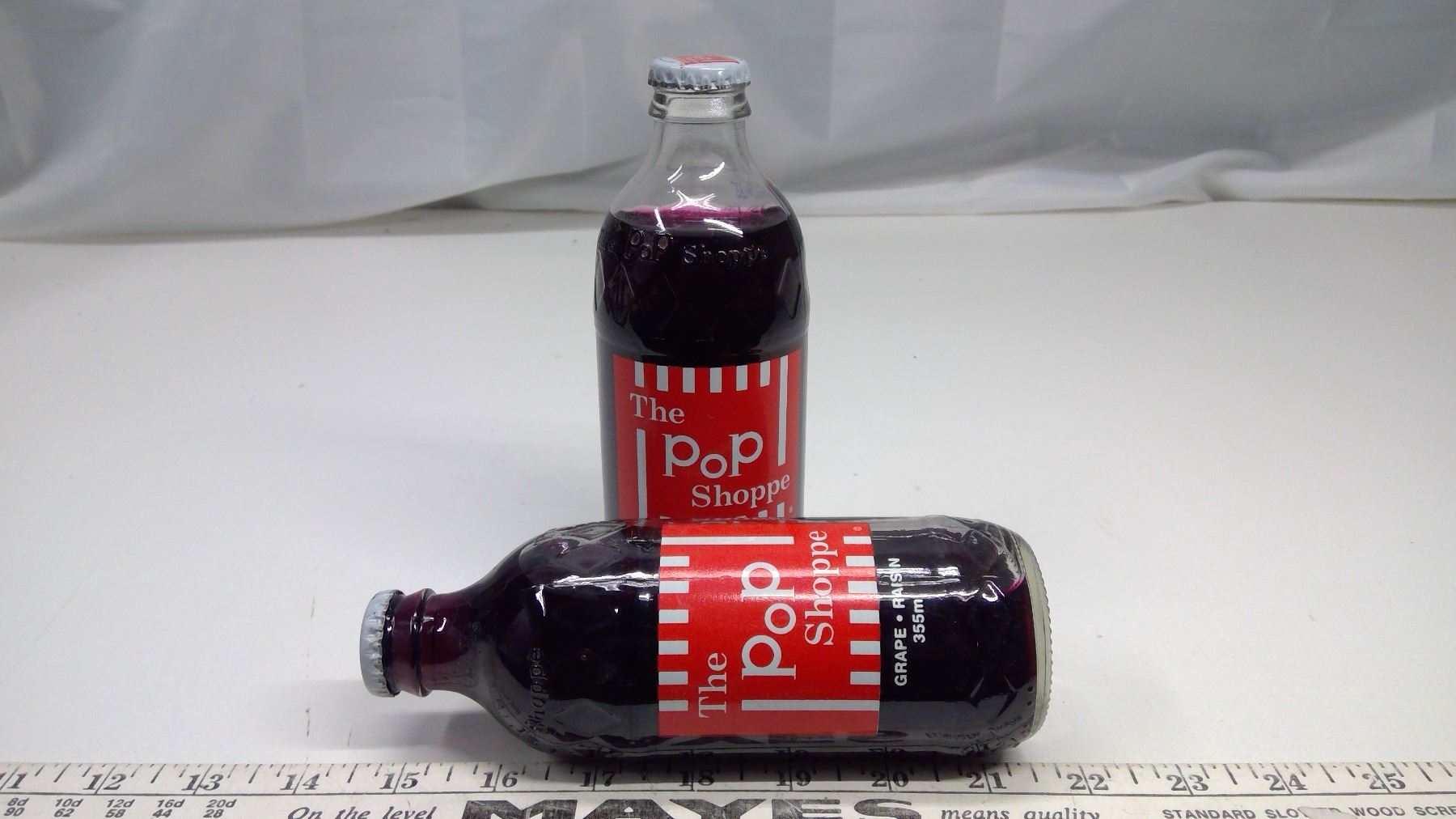 Pop Shoppe Grape 355mL short bottles (2), unopened