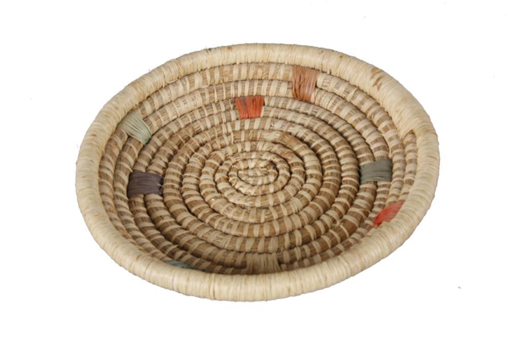 Popago Basketry Tray with Geometric Designs Shows very good condition with minor whipping loss at rim measuring 3/4", basket measures 10"x2 1/2" tall.Shows very good condition with minor whipping loss at rim measuring 3/4", basket measures 10"x2 1/2" tall.