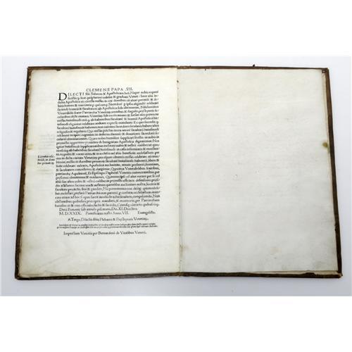 <B>Pope Clement VII Letters</B></I> addressed to the Venetian Republic. (Venice: Bernardinus de Vital ibus n.d [1531]) Folio, 8 leaves, printed on vellum. Contemporary olive and tan morocco, gilt decorated, some repairs, a very attractive example. From the Henry E. Luhrs Collection.