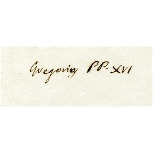 <B>Manuscript Letter Signed by Pope Gregory XVI</B></I> Secretarially scribed LS “<I>Gregory PP.XVI</B></I>”, one page, 8.25” x 11”, Vatican City, March 30, 1838, to the Royal Duke of Modena, Italy, regarding the dispensation of funds. In part: "<I>Upon reflection on your comments, we hereby request the funds be given to the Chapter to pass to the Bishop, and we would be pleased if they were given by the Superintendent Canon, not, however as a Deputy of the latter but upon our special authorization. To this end we intend to grant everything to the above mentioned Canon, which granting must be mentioned in the document. Trusting fully in your Highness, we are convinced this will be done... Having this faith, we requested that Monsignor Regianni not postpone his consecration, and upon our insistence, he consecrated last Sunday... We have... ordered that all necessary steps be taken... so that he may easily take care of everything upon his return to Modena. In the anticipation of the good outcome of our requests and of Your Highness' best intentions, we send our most heartfelt apostolic blessing...</B></I>" The letter reflects the somewhat autocratic approach that characterized the Pope's reign, and in part refers to the Vatican' approval of the funding for a new altar in Modena. The letter is very lightly and evenly toned, and was beautifully penned by one of the Pope's assistants. An English translation is included. Pope Gregory XVI (1831 - 1846) was an arch conservative in an age when Europe was rapidly modernizing. His reign is regarded by many as one that sealed the demise of the Vatican States. He did, however, issue a strong condemnation of the slave trade and his interest in art and learning led to some important advances in the humanities.<BR><BR><b>Shipping:</b> Flat Material, Small (<a target="_blank" href="http://www.heritageauctions.com/common/shipping.php">view shipping information</a>)