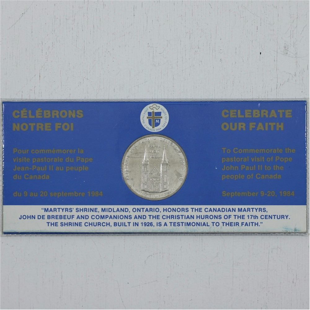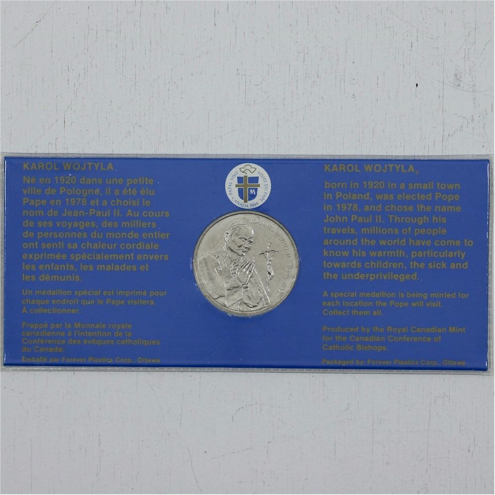 Pope John Paul II Visit to Canada September 1984 Medallion in informational display card.
