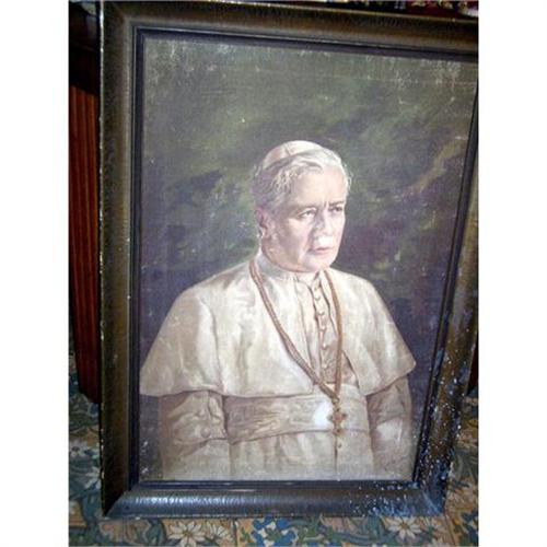 This original Oil on canvas,fine quality portrait, now in poor conditions, is signed by G. Campe.., we really could not find who this artist was ,but was probably best available portrait painter if commited to paint the pope...