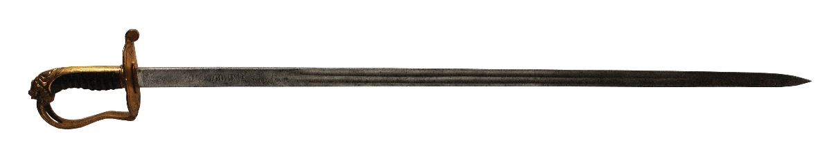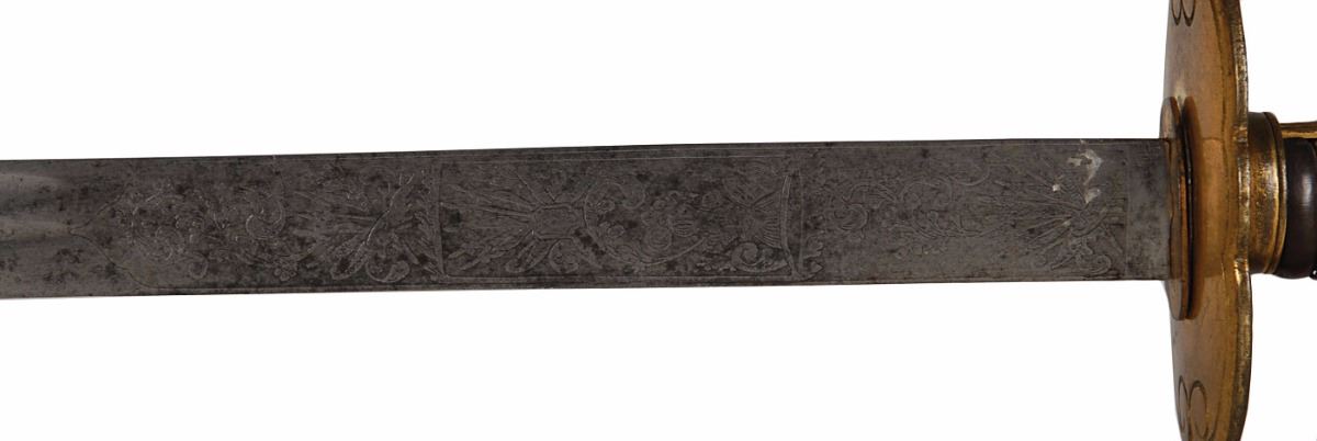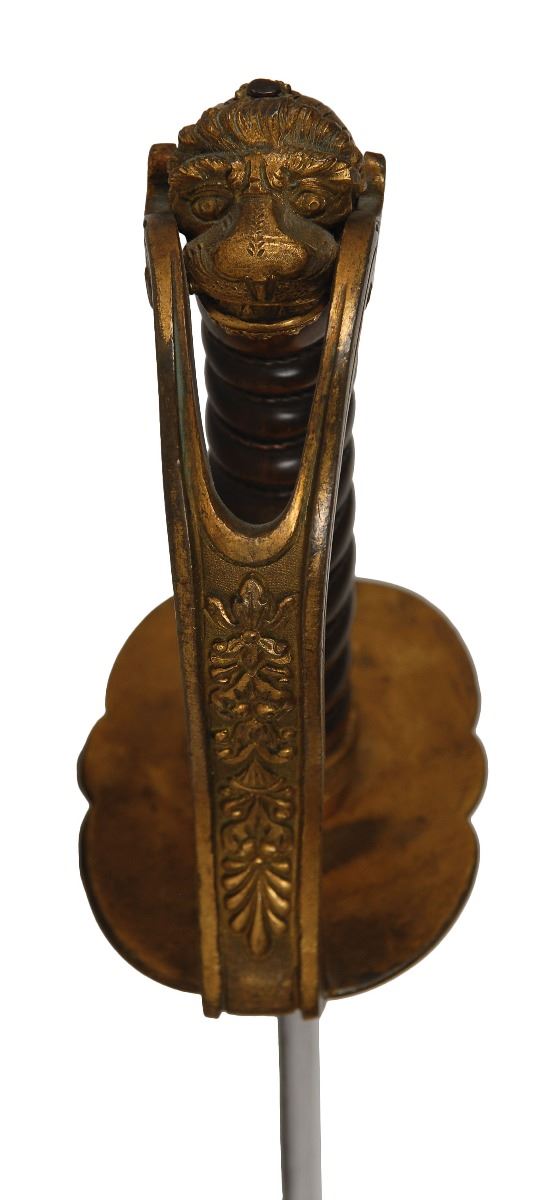 Scarce circa 1870–1878 ceremonial sword of the Swiss Guard, measuring an overall 39? long, with the dull blade featuring the text "Viva Pio IX" and ornate imagery. The pommel features a lion's head, reminiscent of the two lions in his coat of arms. In very good to fine condition. The date of this sword can be determined based on its ceremonial purpose; beginning in 1870, the Pontifical Swiss Guard took on a new role as a primarily ceremonial force, rather than a true fighting guard.