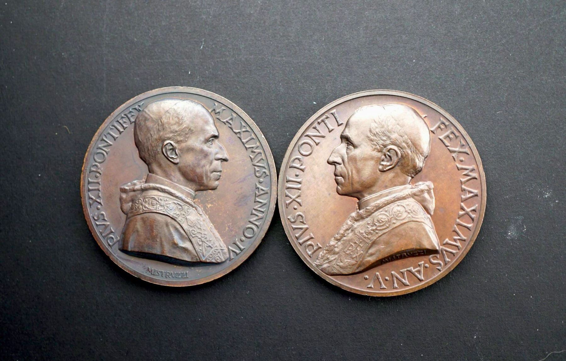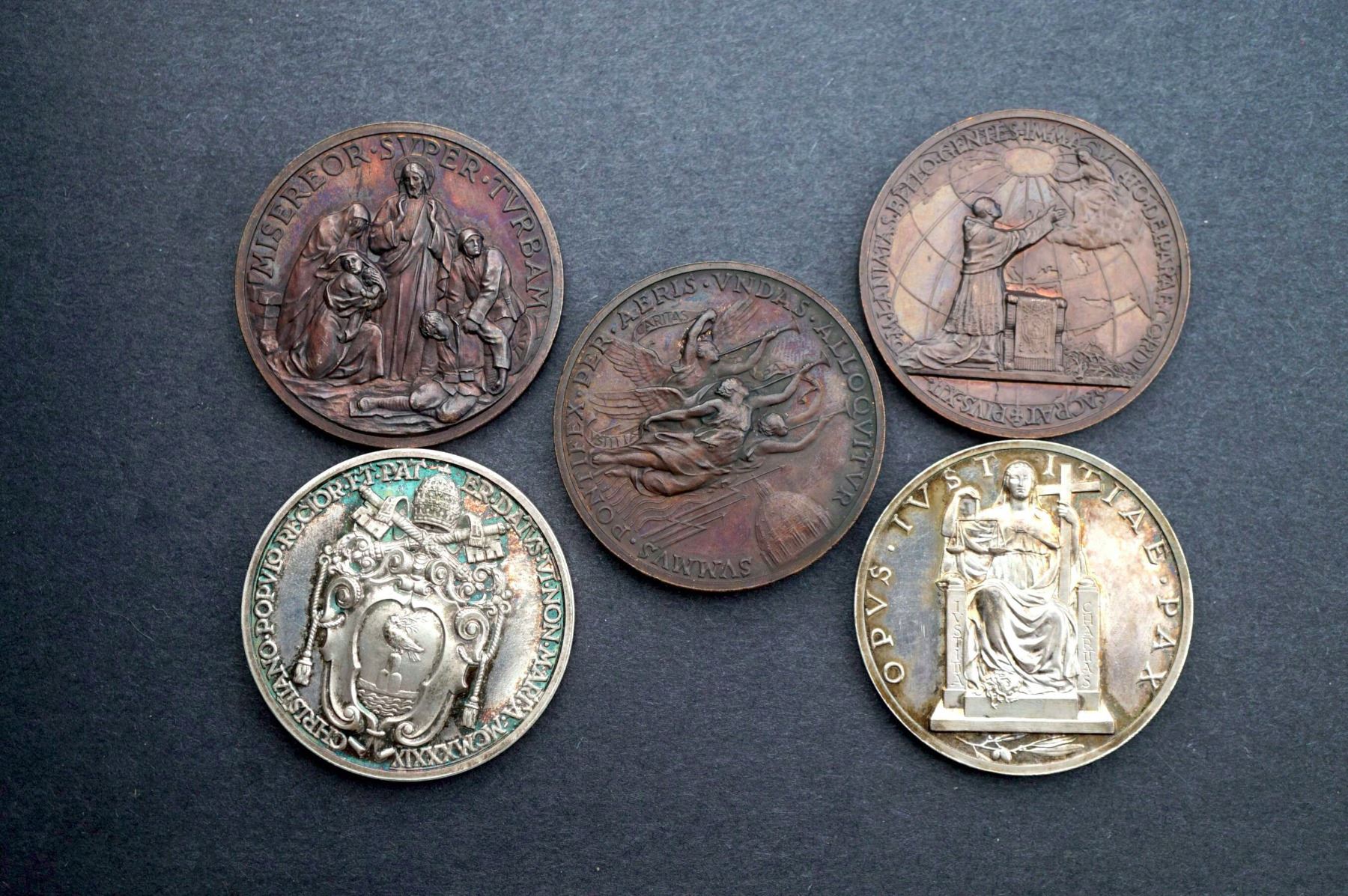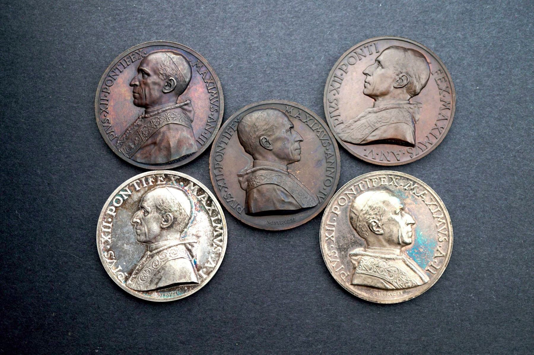 Pope Pius XII - Vatican - 1939-43, 5 pcs Annual Medals Years 1-5, 2 Silvered