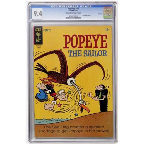 <B>Popeye #77 File Copy (Gold Key, 1965) CGC NM 9.4 Off-white to white pages.</B></I> Back cover pin-up. CGC notes, "From the Random House Archives." Overstreet 2007 NM- 9.2 value = $48. CGC census 9/07: 5 in 9.4, none higher.<BR><BR><b>Shipping:</b> Comics - Slabbed (certified) (<a target="_blank" href="http://www.heritageauctions.com/common/shipping.php">view shipping information</a>)