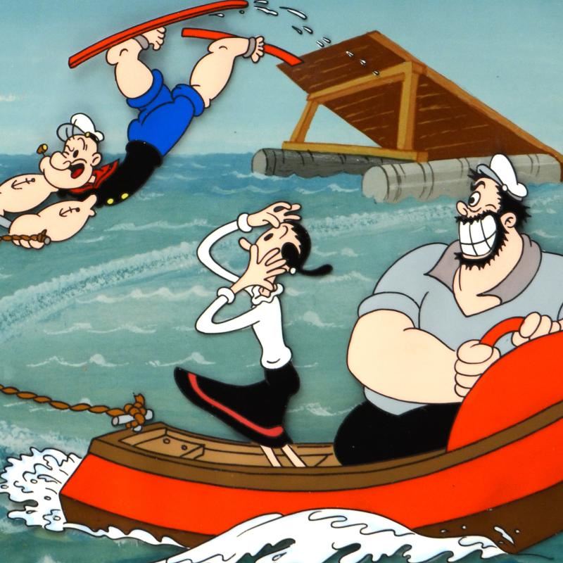 "Popeye Jumps for Olive" is a limited edition hand inked and hand painted animation cel with background, numbered and hand signed by Myron Waldman (1908-2006). Includes Certificate of Authenticity! Measures approx. 14" x 12" (background), 11" x 9" (cel).