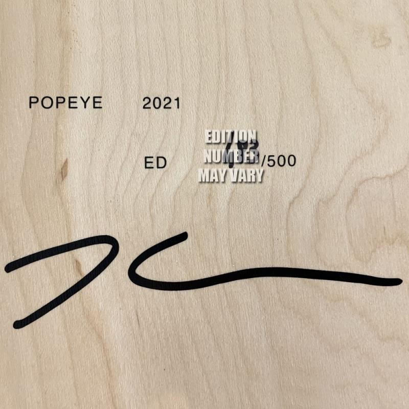 Popeye Skateboard By Koons, Jeff. "Popeye Skateboard" is a limited edition skateboard triptych by Jeff Koons, numbered and bearing the plate signature of the artist inverso. Includes Certificate of Authenticity. Measures approx. 30" x 37" x 3" (frame), 24" x 32" (skateboards).