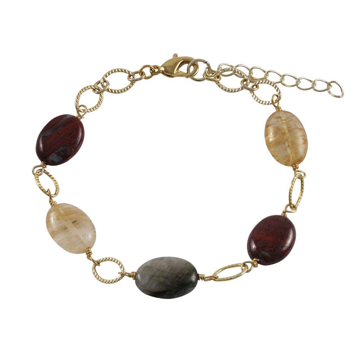 Poppy Jasper Combination Of Semi Precious Stones On Gold Tone Brass Bracelet- 6.5" 1"