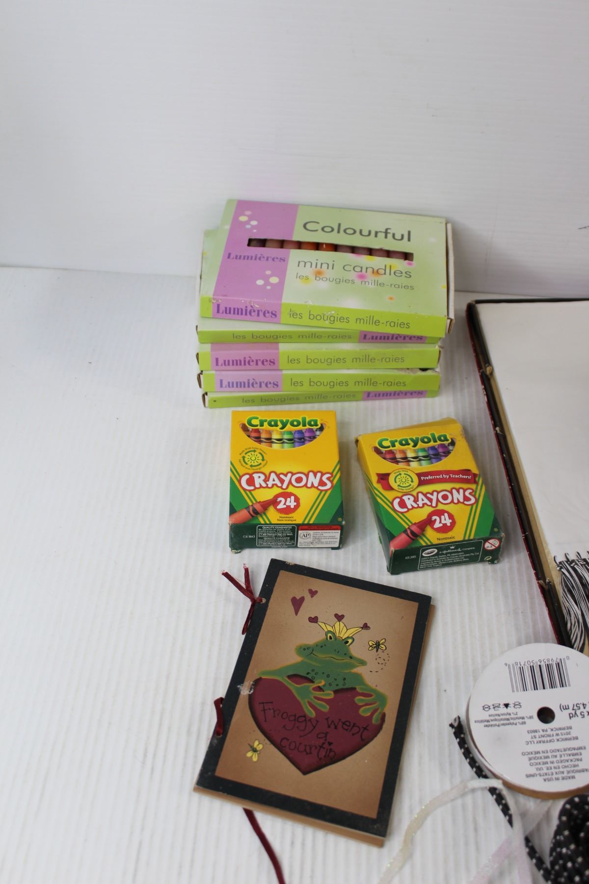 Popsicle Sticks, (5) Mini Candles Packs, (2) Packs Of crayons, Assorted Household Items