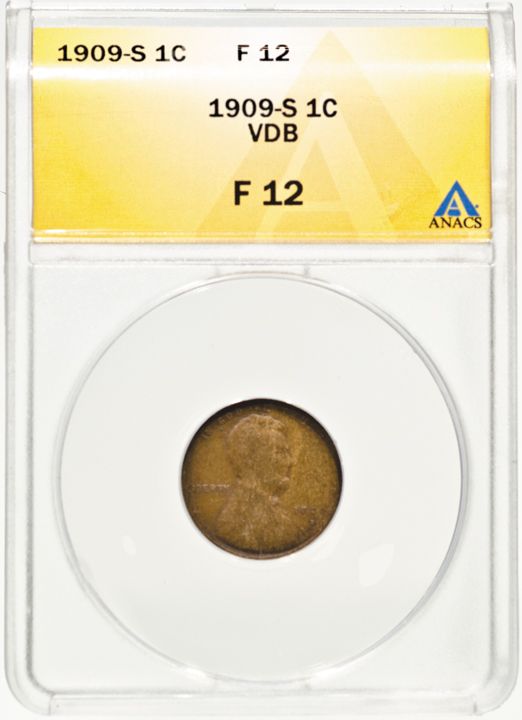 1909-S VDB Lincoln Cent, ANACS graded Fine-12.