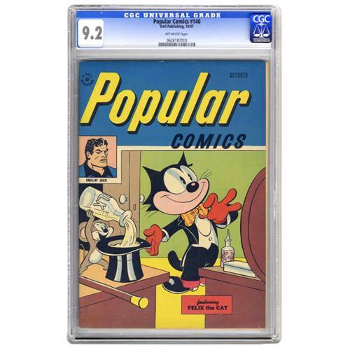 <B>Popular Comics #140 (Dell, 1947) CGC NM- 9.2 Off-white pages.</B></I> Featuring Felix the Cat. This is the only copy certified by CGC to date. Overstreet 2005 NM- 9.2 value = $110. CGC census 12/05: 1 in 9.2, none higher.