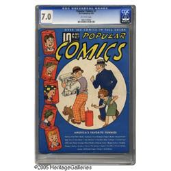 <B>Popular Comics #7 (Dell, 1936) CGC FN/VF 7.0 Off-white pages.</B></I> Overstreet doesn't even list values above VF for this Platinum Age book, and our offering is the only copy that CGC has certified higher than VG. Characters include Dick Tracy, Don Winslow, Little Orphan Annie, and Tom Mix. Overstreet 2004 FN 6.0 value = $300; VF 8.0 value = $725. CGC census 12/04: 1 in 7.0, none higher. <I>From the collection of Larry Doucet.</B></I>