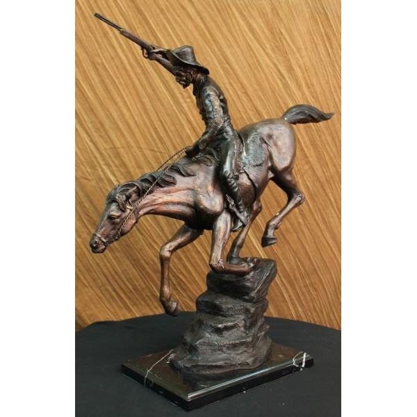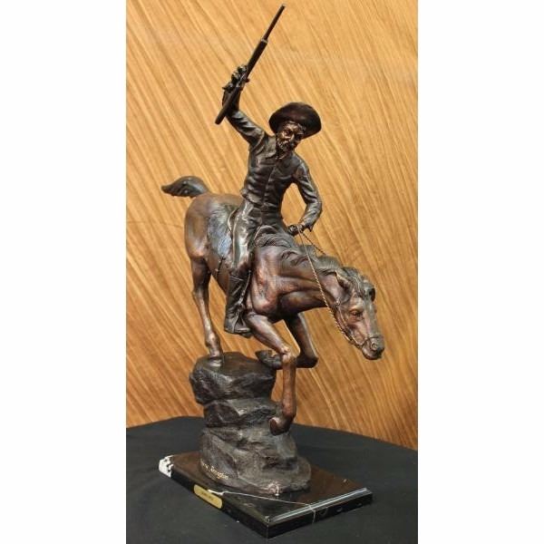 Popular Down Hill Cowboy With Gun Bronze Sculpture on marble base Statue