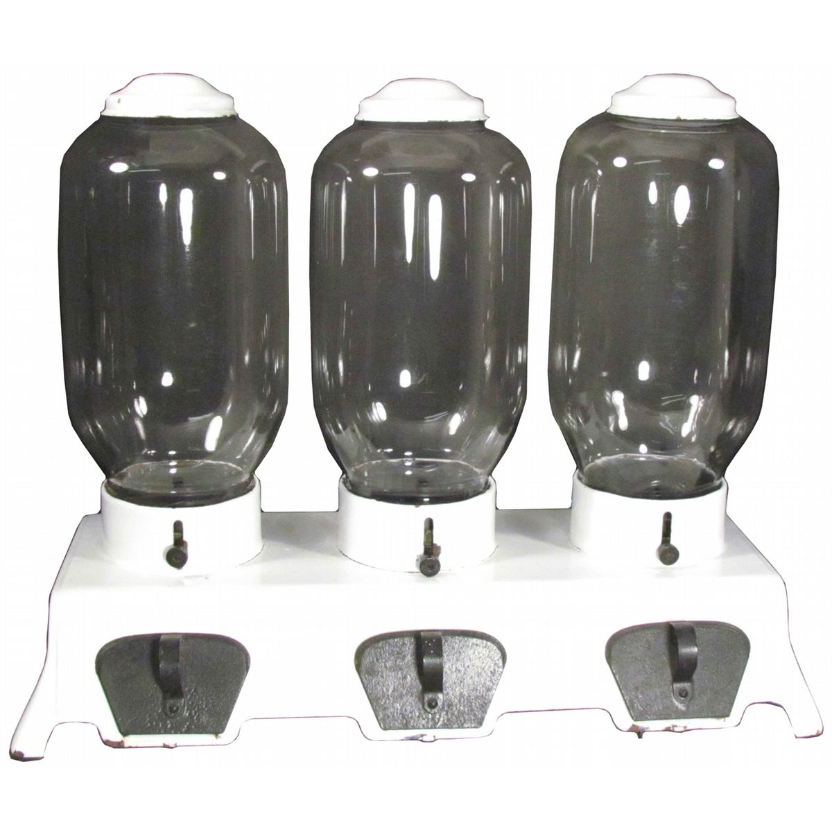 Porcelain 3 Jar Peanut Vendor. The Kelling-Karel Company, "The Nut House", NY and Chicago. Comes with original scoops. Excellent condition. 21 X 17 X 10 inches.