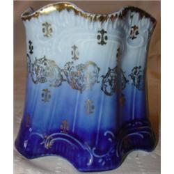 Porcelain Austrian covered tobacco jar with Kaufmann artist signed courting scene. Stands 7 1/4" tall and is marked on the bottom Victoria Austria.