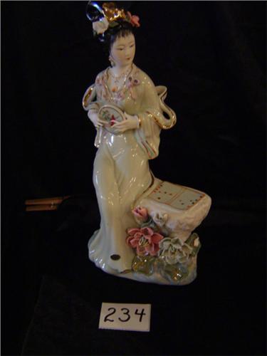 Green "Lady of Intelligence" Porcelain Figurine, 12" tall X 7" wide X 3.5" deep. Beauty playing board game. From China