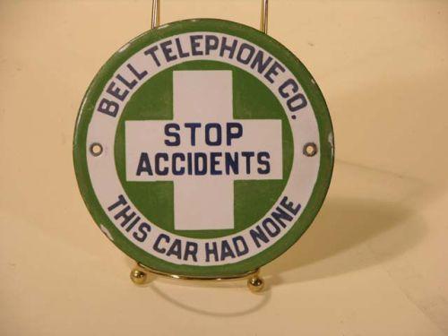 Porcelain Bell Telephone sign, 1 sided, 3 color, 6" diameter. Ex. cond.